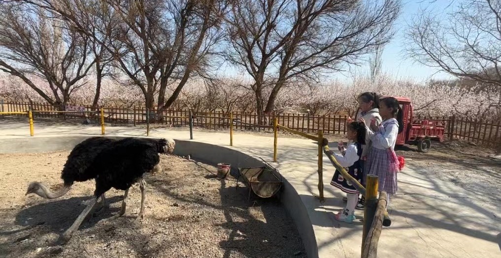 烏魯木齊游客齊嘉慧說(shuō):“今天我來(lái)到杏花村,和我的家人到動(dòng)物園里看到了鴕鳥(niǎo),它非常大,我非常喜歡?!?/p>