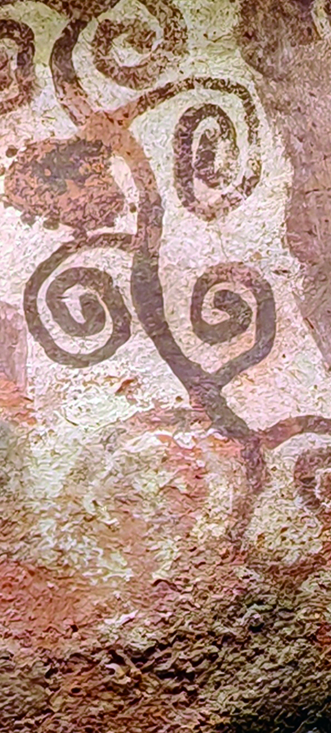 田園葡萄紋彩陶罐局部葡萄藤蔓紋圖案。劉俊佑/攝