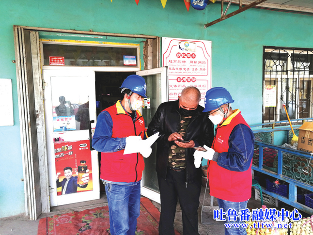 馬春強(qiáng)和同事指導(dǎo)居民下載使用“網(wǎng)上國網(wǎng)”App購電。吐魯番融媒中心通訊員 李杰夫 攝