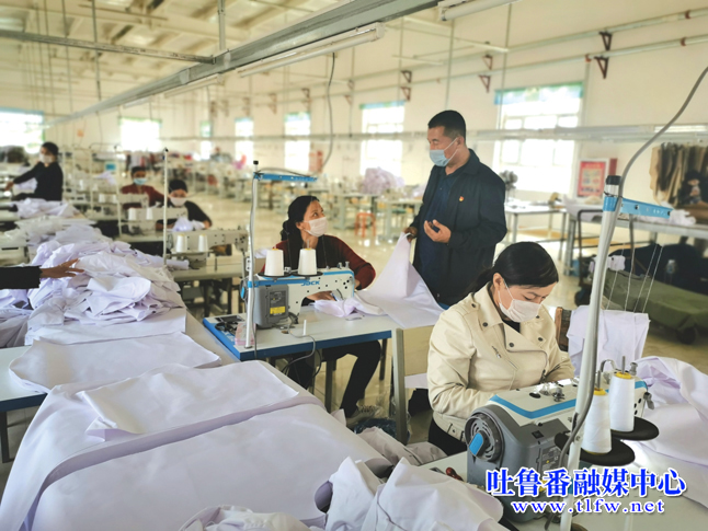 為保證生產(chǎn)進(jìn)度和質(zhì)量,庫爾班每天忙完工作后都會(huì)到車間查看生產(chǎn)情況,并為加班的工人煮茶倒水、加油鼓勁。他說:“我們是在和時(shí)間賽跑,每天多生產(chǎn)一件防護(hù)服,沖在一線的防疫人員就多一重保護(hù)。”