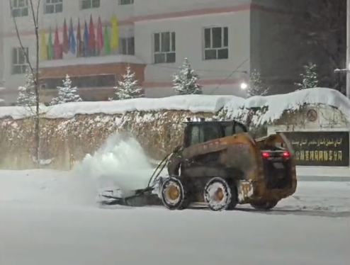 2月16日凌晨,阿勒泰市有關部門連夜清掃積雪。視頻截圖/雪都融媒