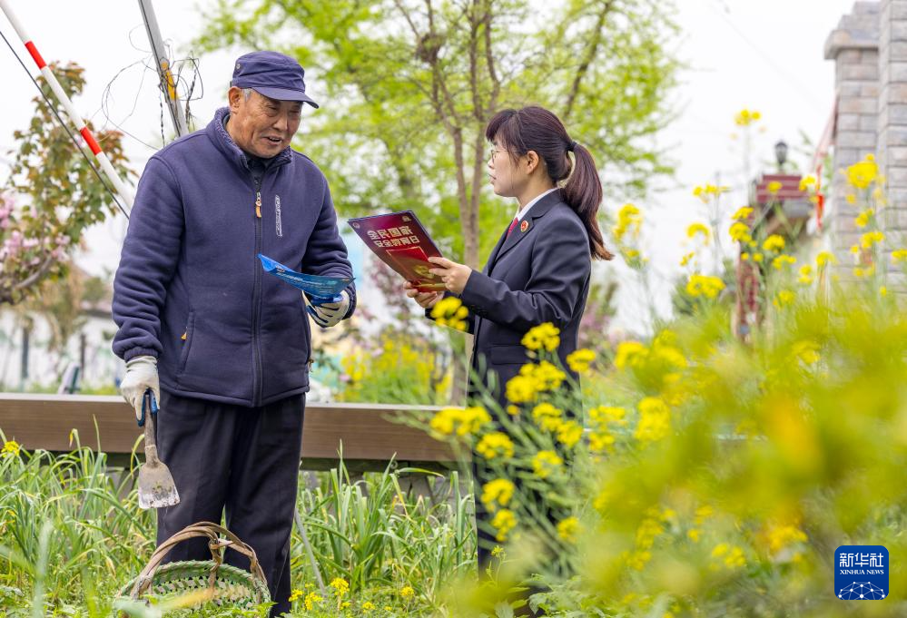 4月14日,檢察干警在江蘇省泰州市姜堰區顧高鎮蘆莊村為村民宣傳國家安全知識。新華社發(湯德宏攝)