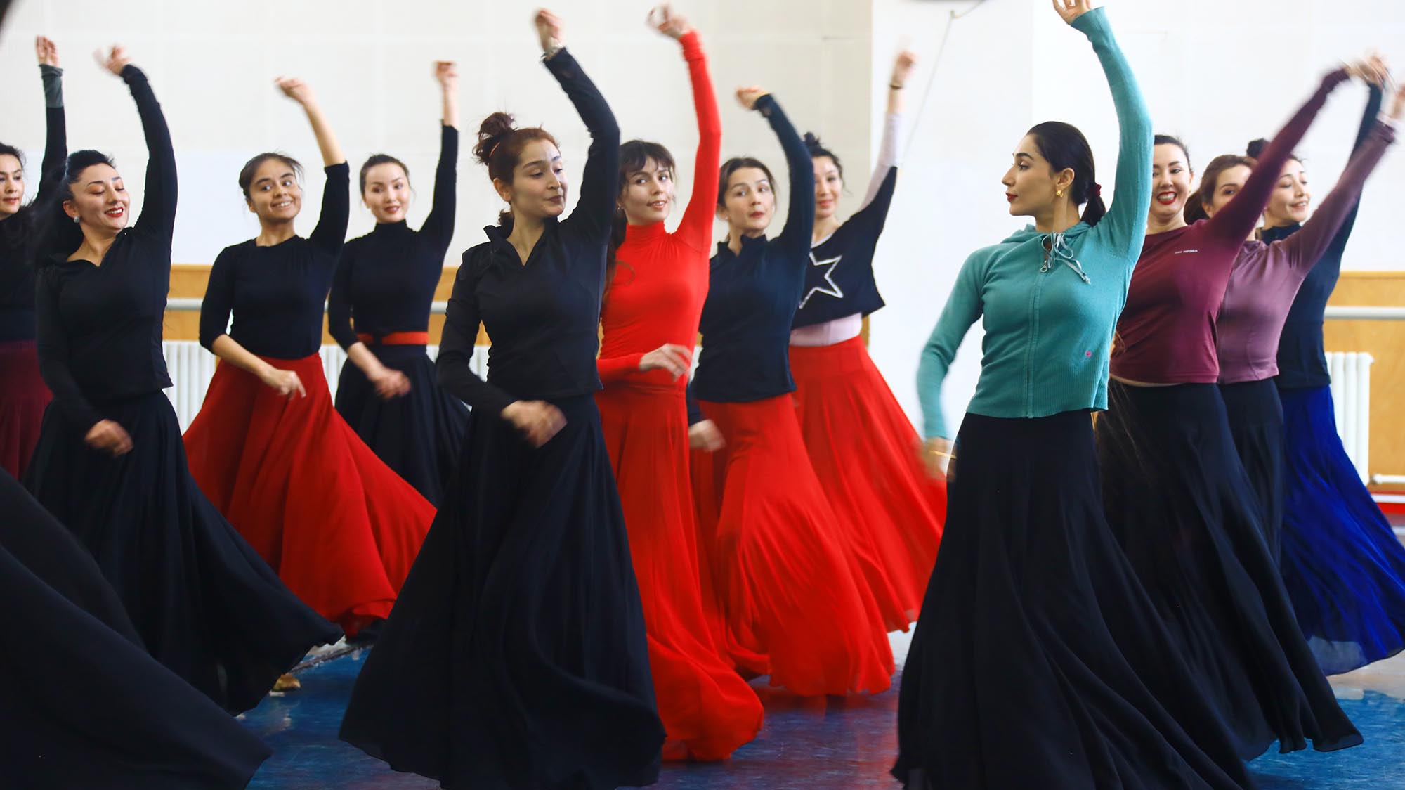 在排練現場,演員們個個熱情高漲,在指導老師的帶領下,一遍又一遍地練習著每一個動作,力求達到最佳狀態。舞蹈演員們的身姿輕盈,旋轉跳躍間盡顯新疆風采;伴奏人員則專注地彈奏著樂器,確保每一段旋律都能完美呈現。