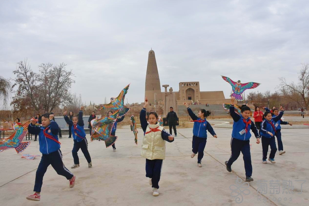 當天,蘇公塔景區開展“彩繪春天 放飛夢想”杏花季研學活動,一只只五彩斑斕的風箏引人注目。孩子們奔跑的身影和自由飛翔的風箏,為景區增添了一道亮麗的風景線。