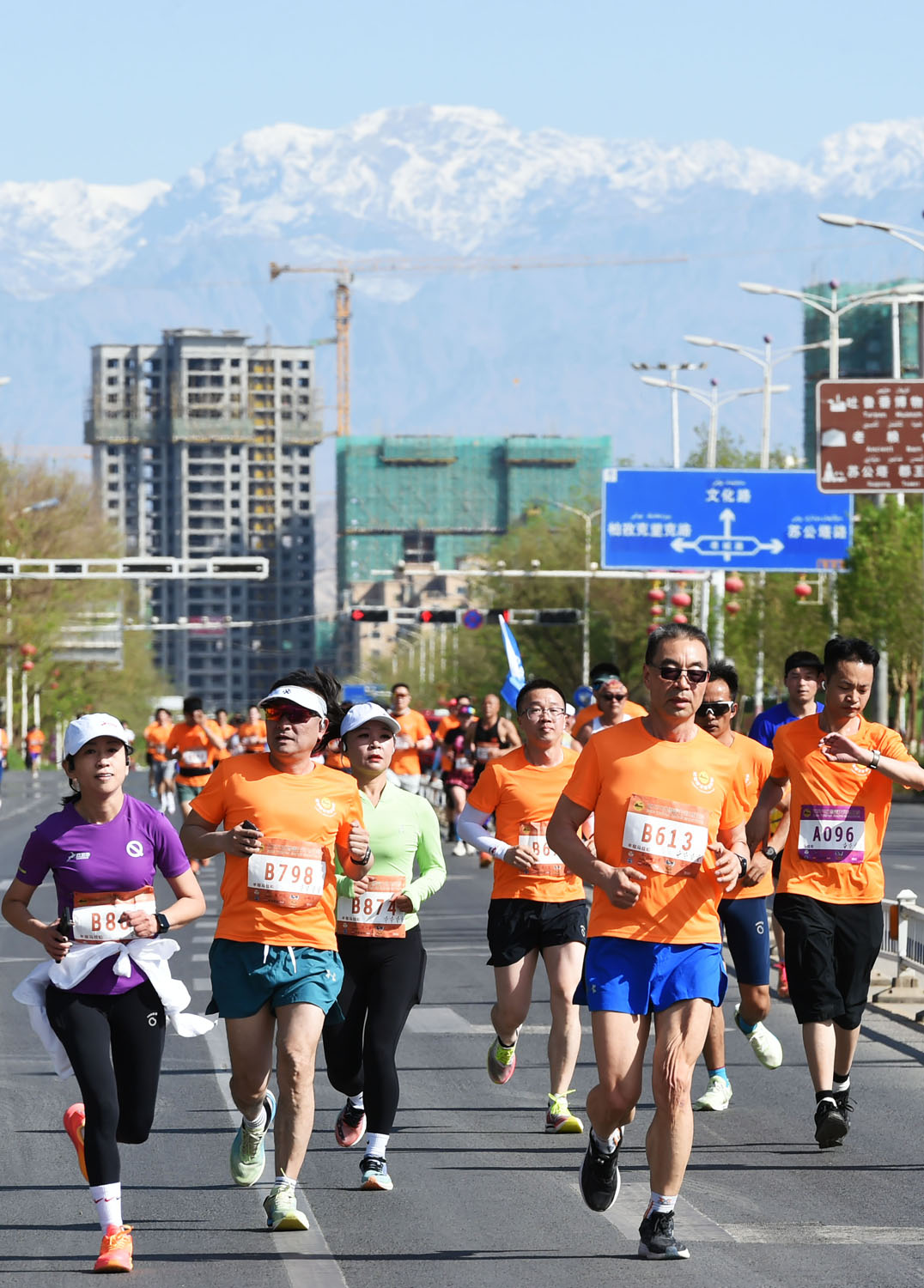 壓腿、拉伸、檢查裝備……10時(shí)38分,隨著發(fā)令槍響起,選手們?nèi)绯彼阌砍觥Y惖郎希扔袥_鋒在前的專(zhuān)業(yè)選手,又有不甘落后的馬拉松愛(ài)好者;既有精神矍鑠的老人,又有活力四射的孩童。大家邁開(kāi)腳步、甩開(kāi)臂膀,在奔跑中享受速度與激情的快感,品味火洲獨(dú)特的風(fēng)景與文化。