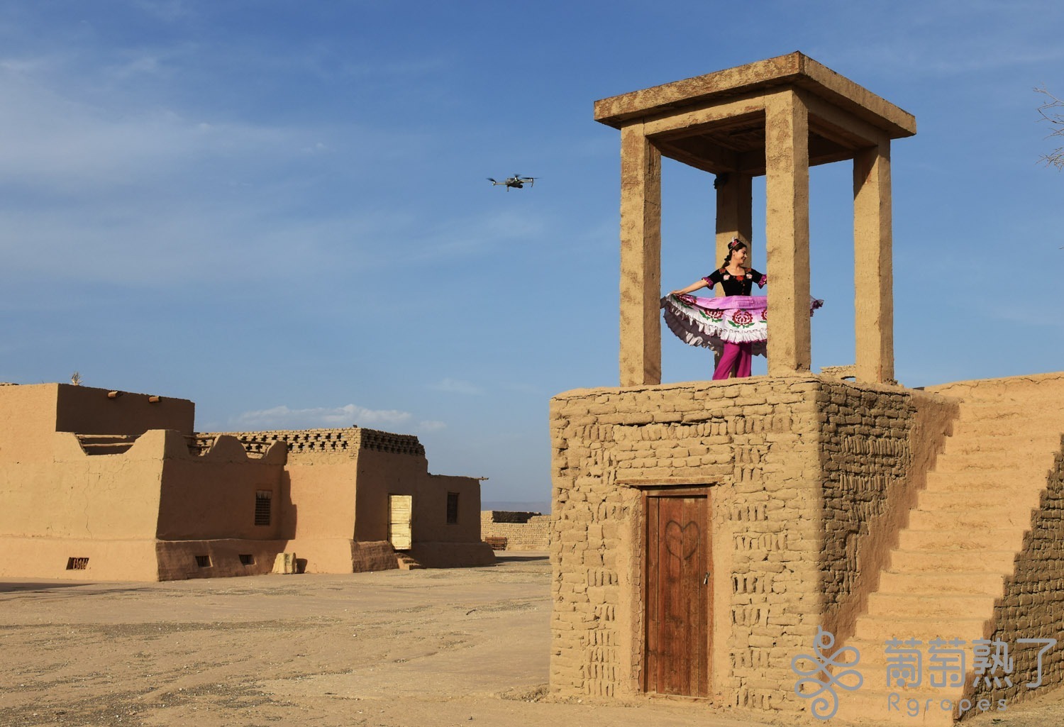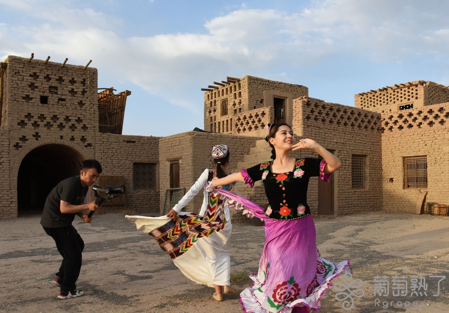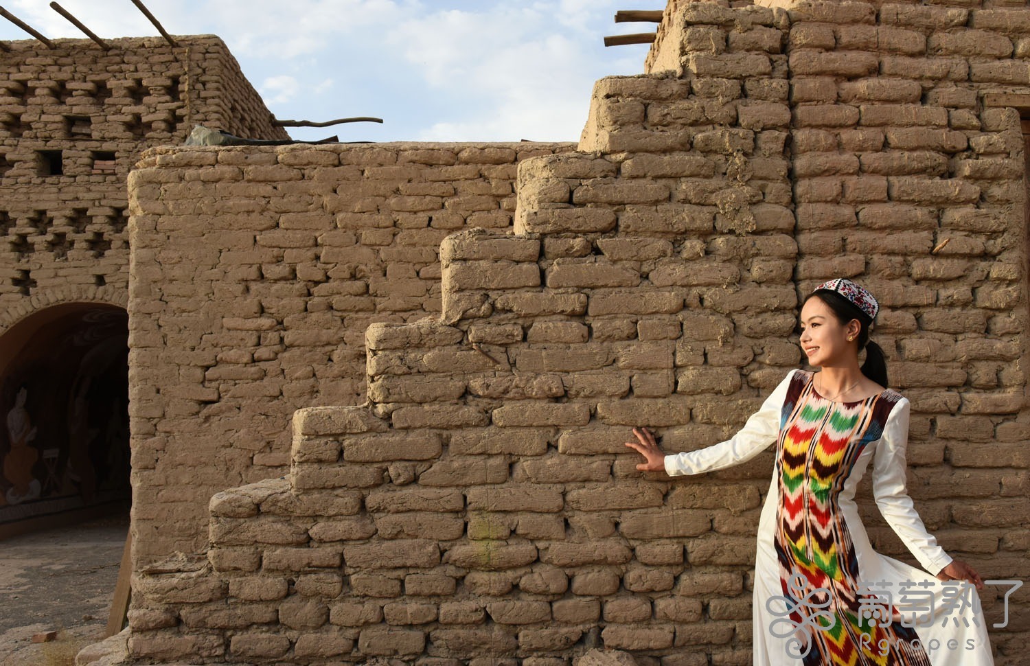 模特在艾丁湖海底古民居街巷漫步。葡萄熟了/吐魯番市融媒體中心 記者 劉健 攝