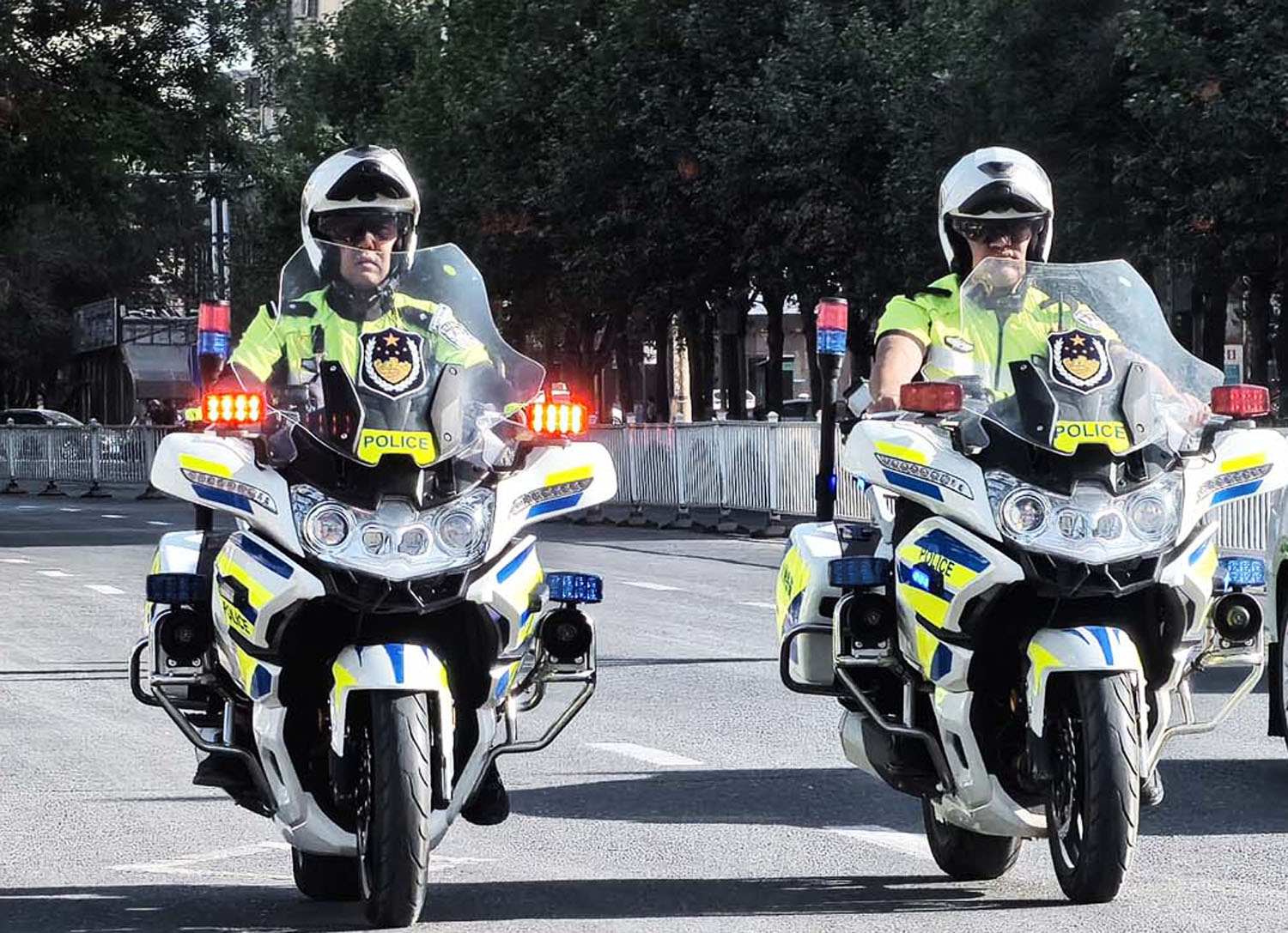 圖為6月17日,交警在高昌區(qū)街頭巡邏。 葡萄熟了/吐魯番市融媒體中心記者 劉健 攝