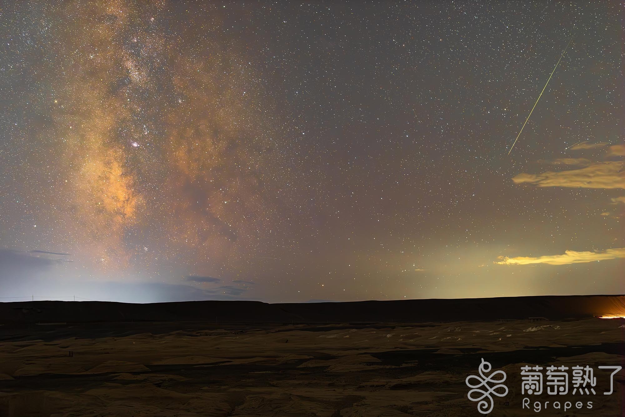 葡萄熟了/吐魯番市融媒體中心訊(文/圖 通訊員 李靖海 胡國凱 黃黎)8月12日22時30分左右,托克遜縣天山紅河谷景區(以下簡稱紅河谷)上空出現了一道罕見的極光,這一自然奇觀被當晚正在該地拍攝英仙座流星雨的攝影師意外記錄了下來。