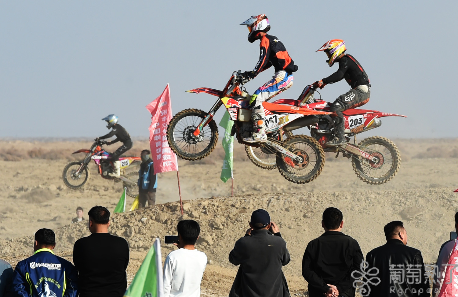 11月10日,在艾丁湖景區,車手們參加摩托車超級場地障礙賽。葡萄熟了/吐魯番市融媒體中心記者 劉健 攝