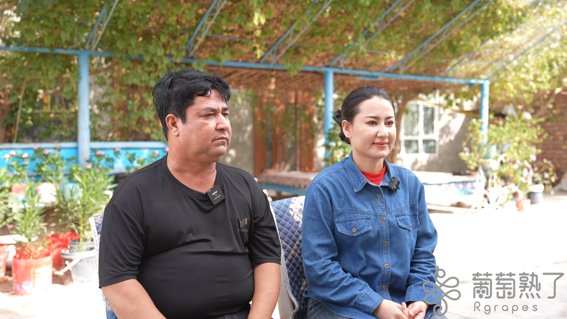 蘇萊曼·依沙克和女兒凱迪熱婭·蘇萊曼。葡萄熟了/吐魯番市融媒體中心記者 謝懂飛 攝