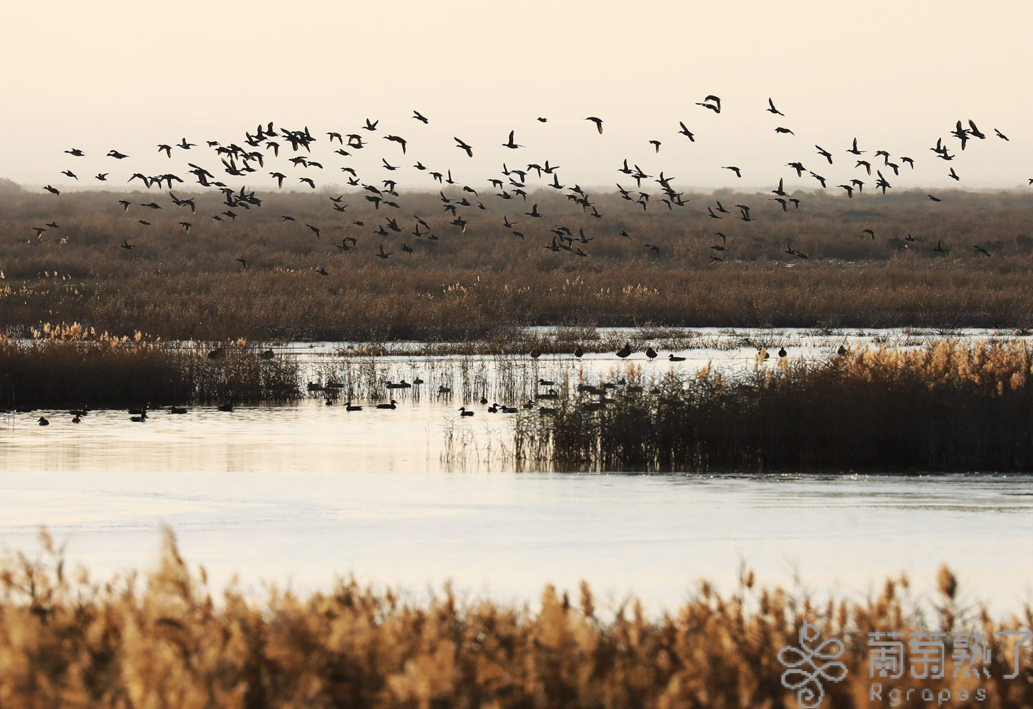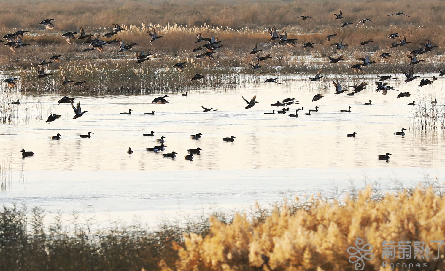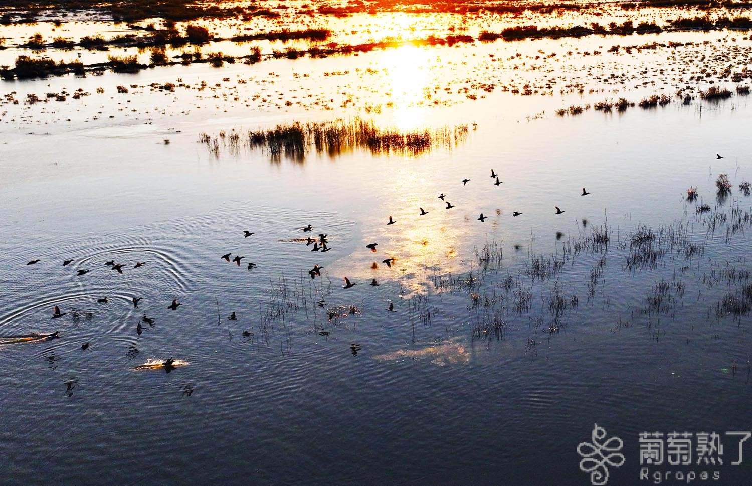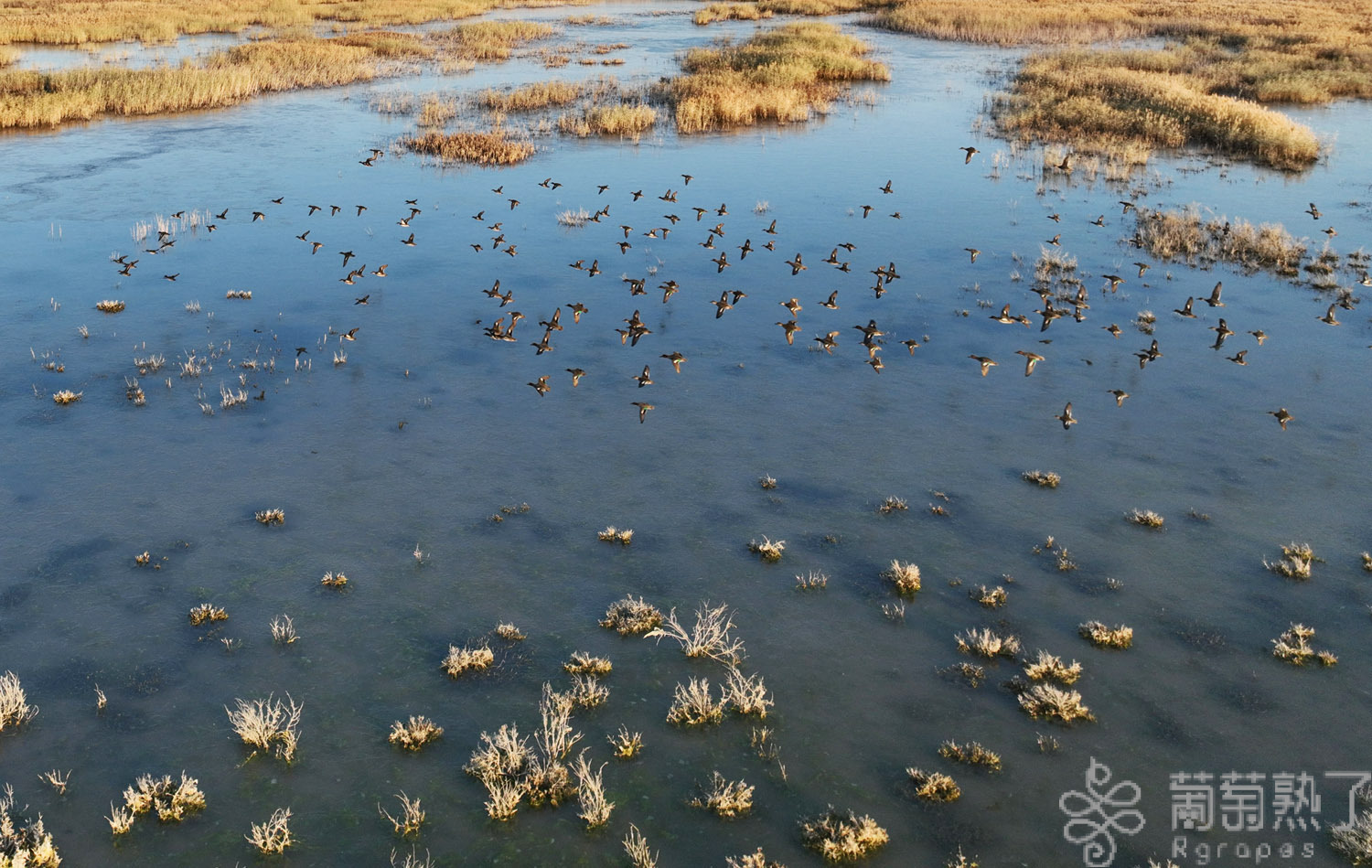 11月26日,候鳥在艾丁湖濕地棲息。葡萄熟了/吐魯番市融媒體中心記者 劉宇杰 攝