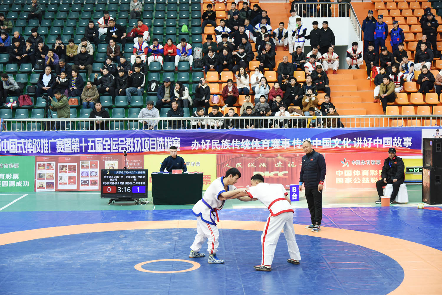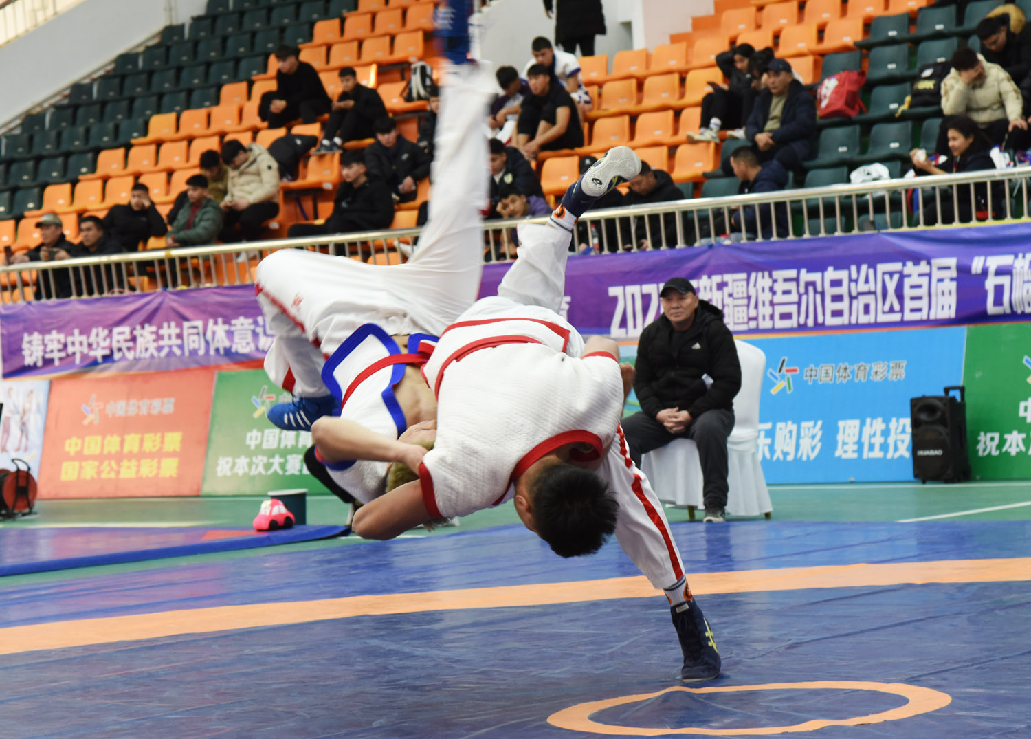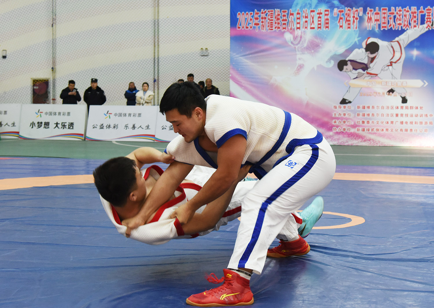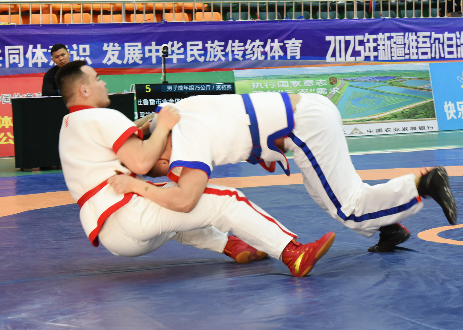 2月12日,2025年新疆維吾爾自治區(qū)首屆“石榴籽杯”中國(guó)式摔跤推廣賽暨第十五屆全國(guó)運(yùn)動(dòng)會(huì)群眾項(xiàng)目選拔賽在高昌區(qū)體育館開(kāi)賽。圖為選手對(duì)決瞬間。吐魯番市融媒體中心記者 劉健 攝