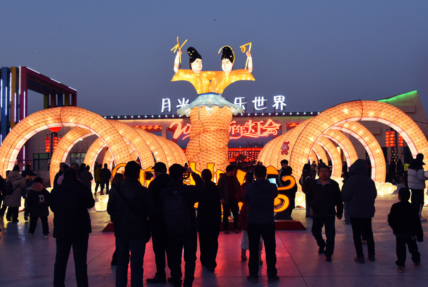 市民和游客在高昌區(qū)月光湖觀看燈展和文藝表演。吐魯番市融媒體中心記者 劉健 攝