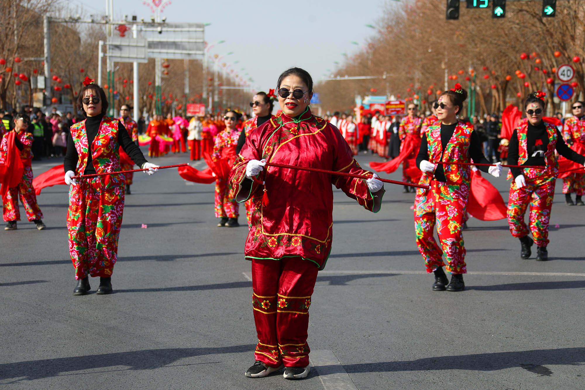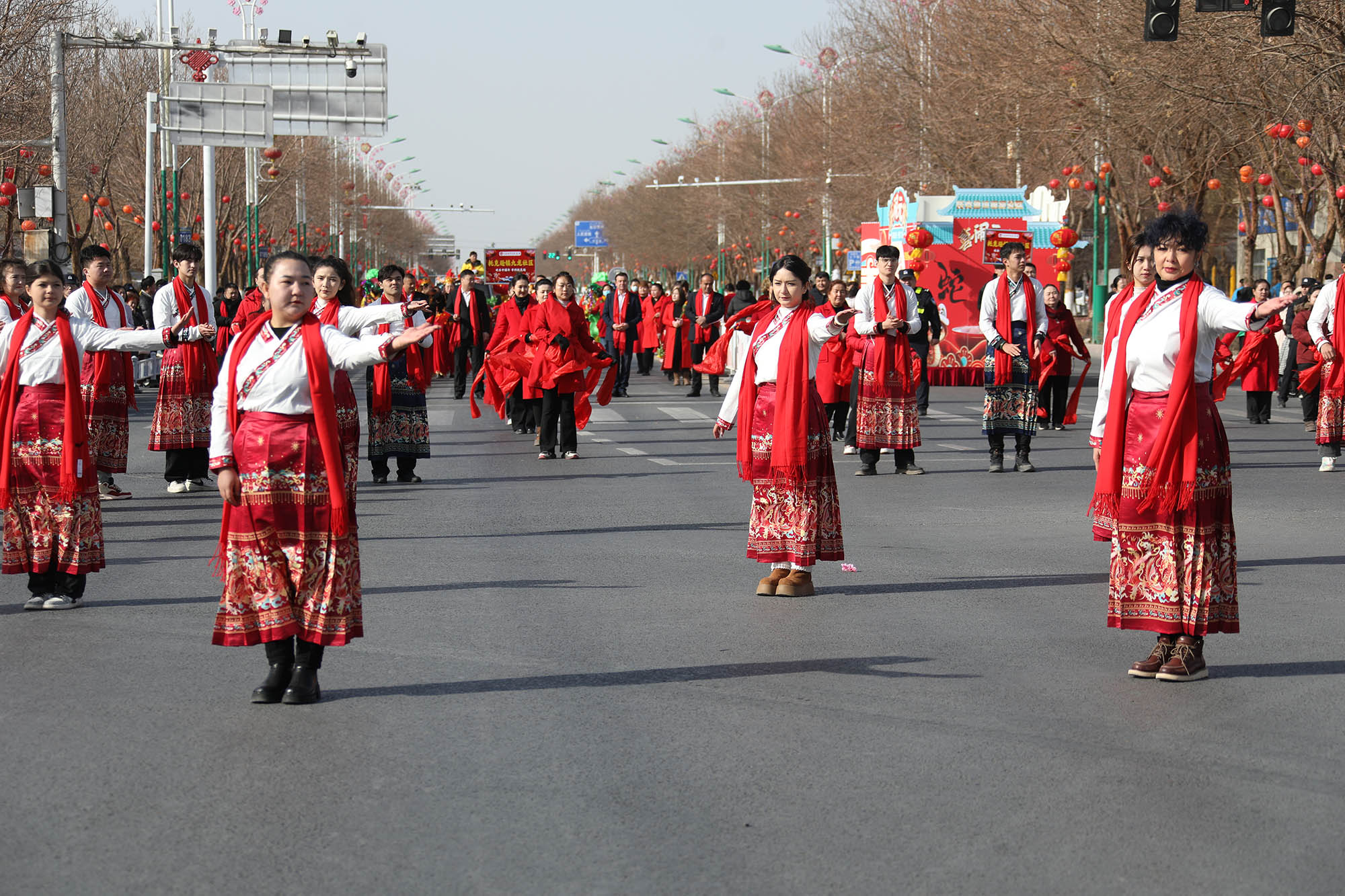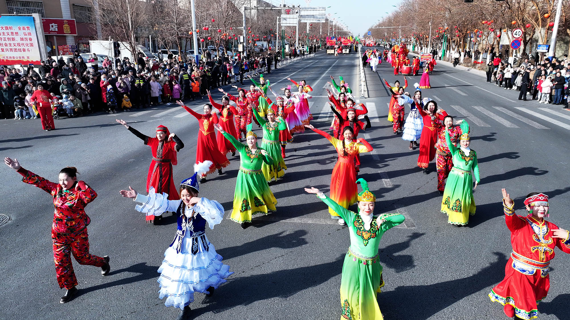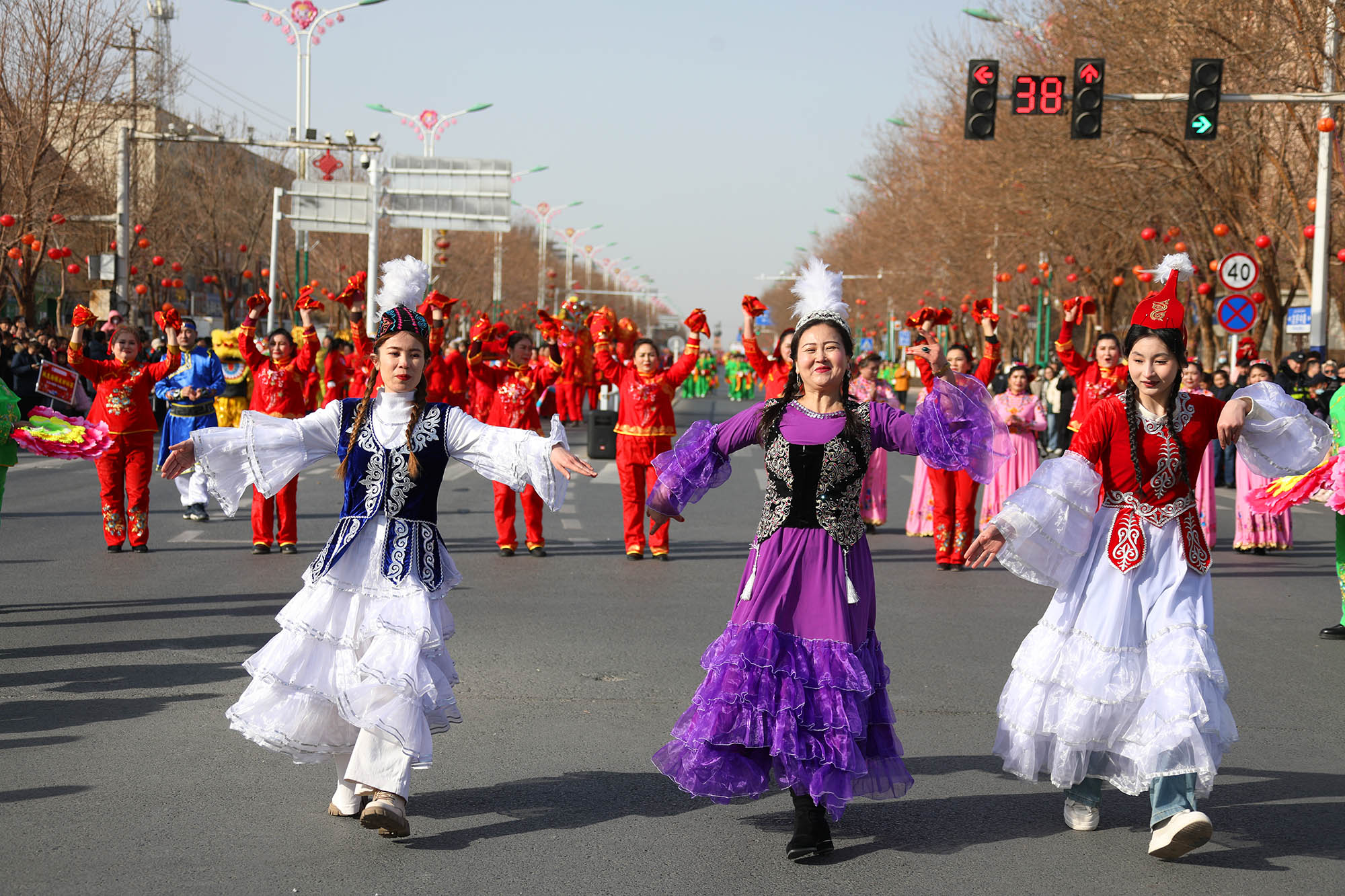 2月13日,托克遜縣舉行“歡樂中國年·幸福托克遜”群眾村晚系列社火巡演活動,19支社火表演隊參加巡游,讓各族群眾在家門口便盡享這場文化盛宴。圖為社火巡演現場。托克遜縣融媒體中心記者 李靖海 攝