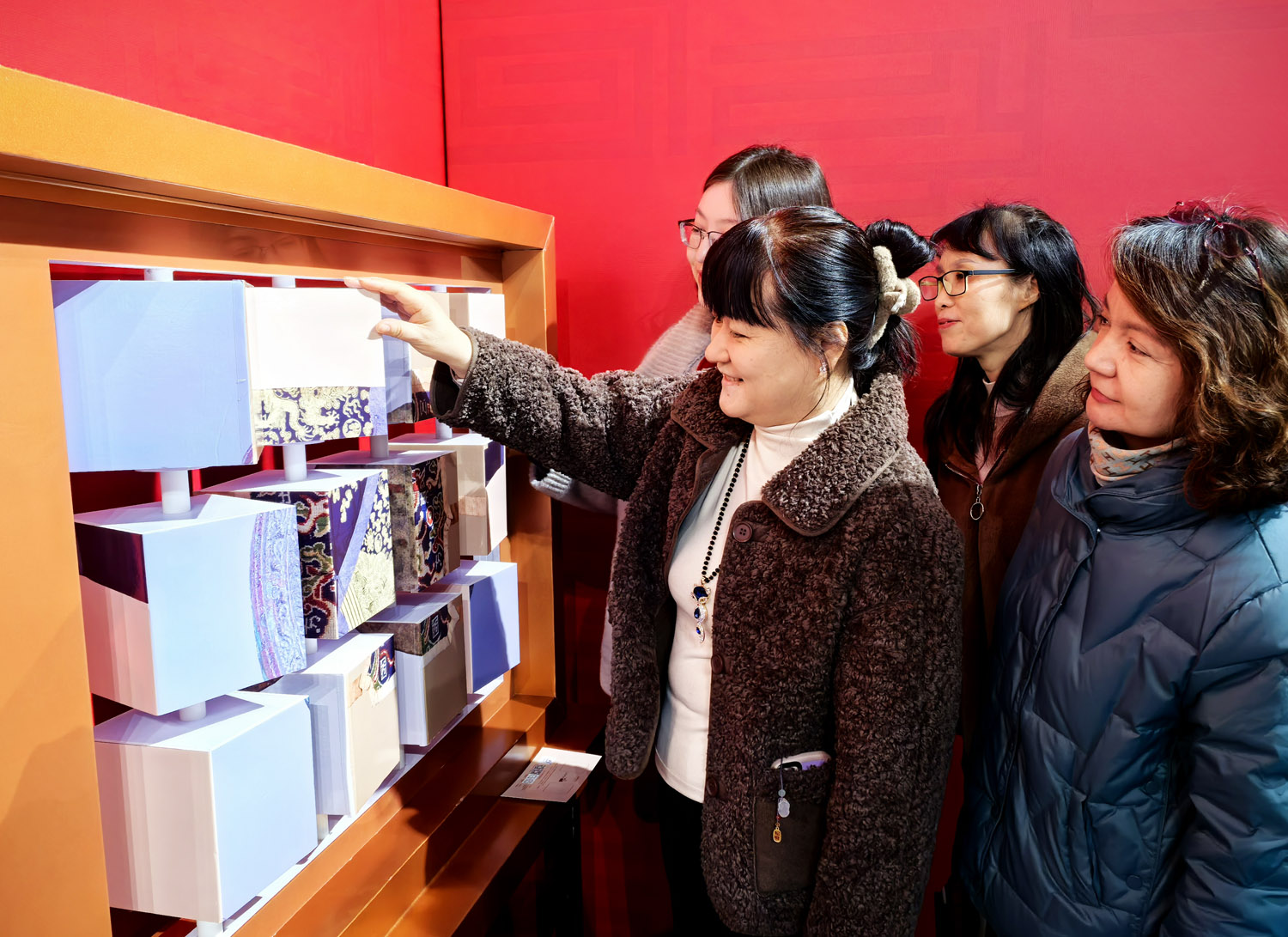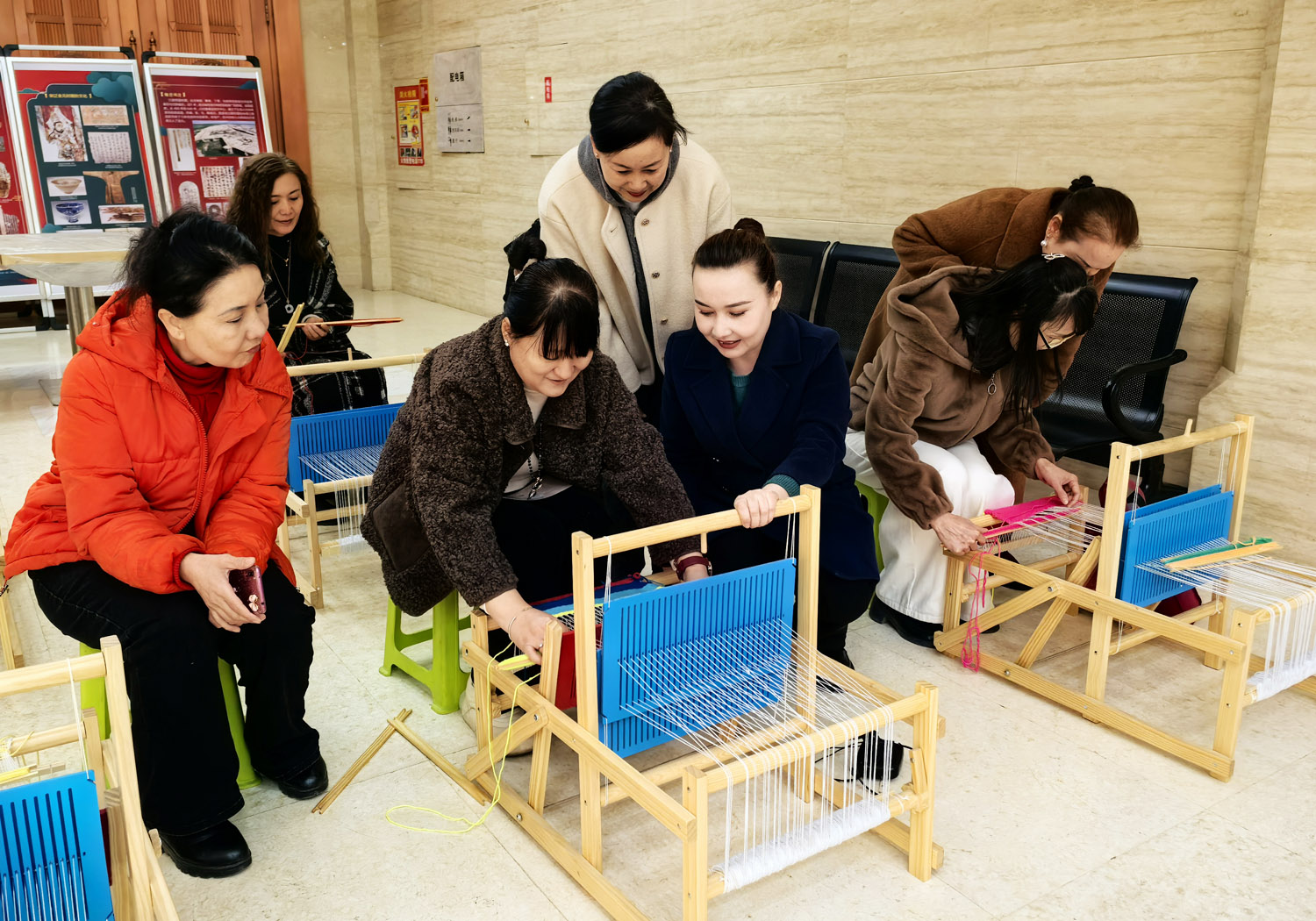 2月27日,干部群眾和游客在吐魯番博物館互動區體驗紡織的樂趣。吐魯番市融媒體中心記者 劉健 攝