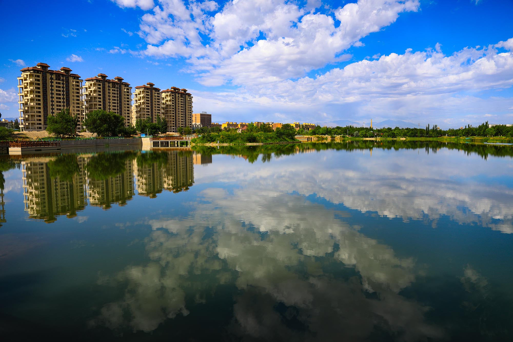 白楊河畔居民小區拔地而起。