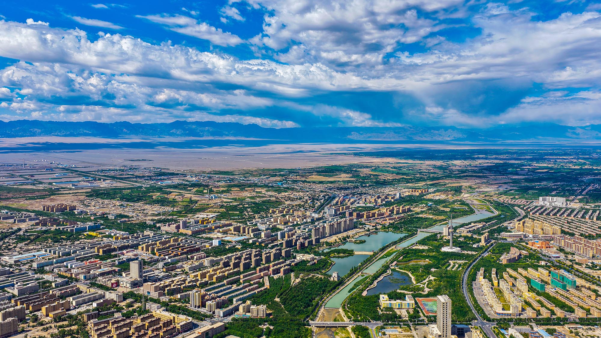 5月21日,托克遜縣天空澄澈如鏡,白楊河碧波蜿蜒穿城而過,流云碎影在河面游弋,恍若天地間鋪展的藍白綢緞。野鴨等候鳥掠過青翠的蘆葦蕩,翅尖點破潺潺水韻,為這座絲路小城注入靈動生機。北望天山博格達峰,古白水澗道兩側呈現生態奇觀,曾經裸露的戈壁灘正被綠植覆蓋,高聳的風力發電機列隊旋轉,現代清潔能源與千年古道相映成趣。向西而望,汩汩清流浸潤出翡翠般的綠洲帶,沿著古天山道向西延展。托克遜縣通過水系治理與生態修復,在天山腳下揮毫書寫著綠意盎然的生態長卷。(文/圖 托克遜縣融媒體中心記者李靖海 胡國凱)
