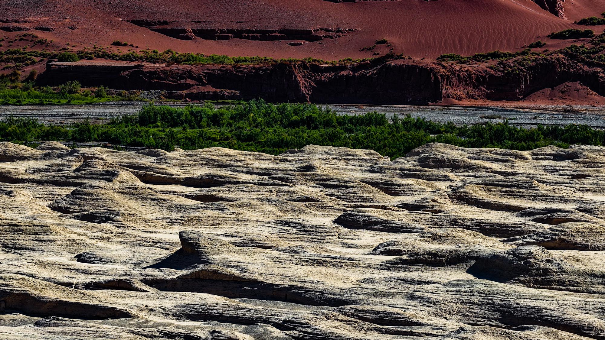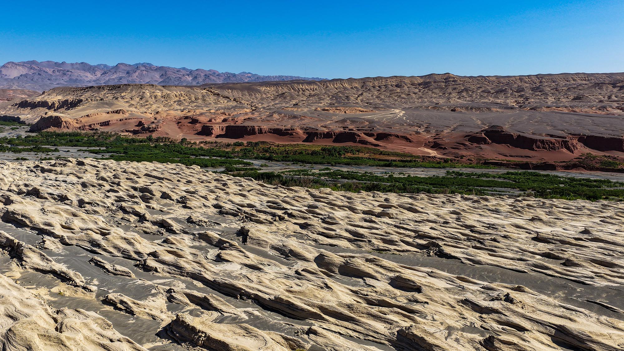 托克遜雅丹地貌與白楊河、天山紅河谷毗鄰共生,構成一幅瑰麗的地質奇觀。