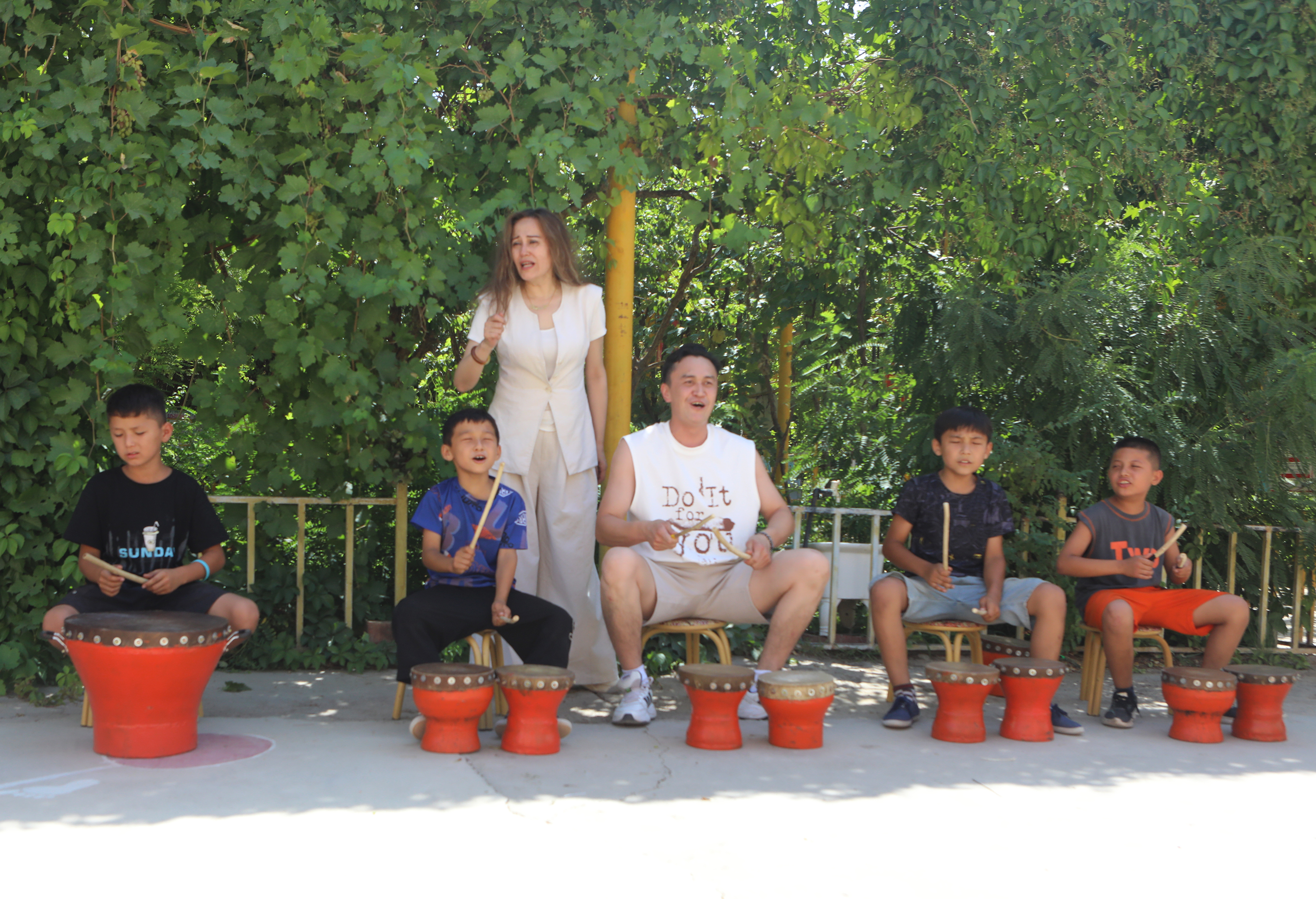 新疆藝術劇院老師指導學生演奏鼓樂。吐魯番市融媒體中心記者 劉字昂 攝