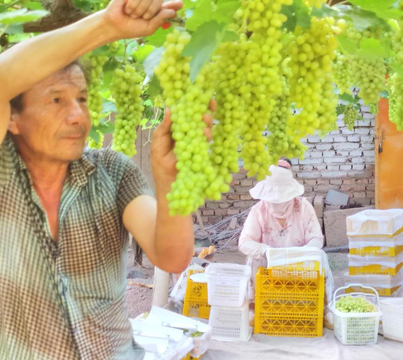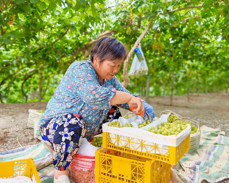達甫散蓋社區居民在采摘裝箱鮮食葡萄。