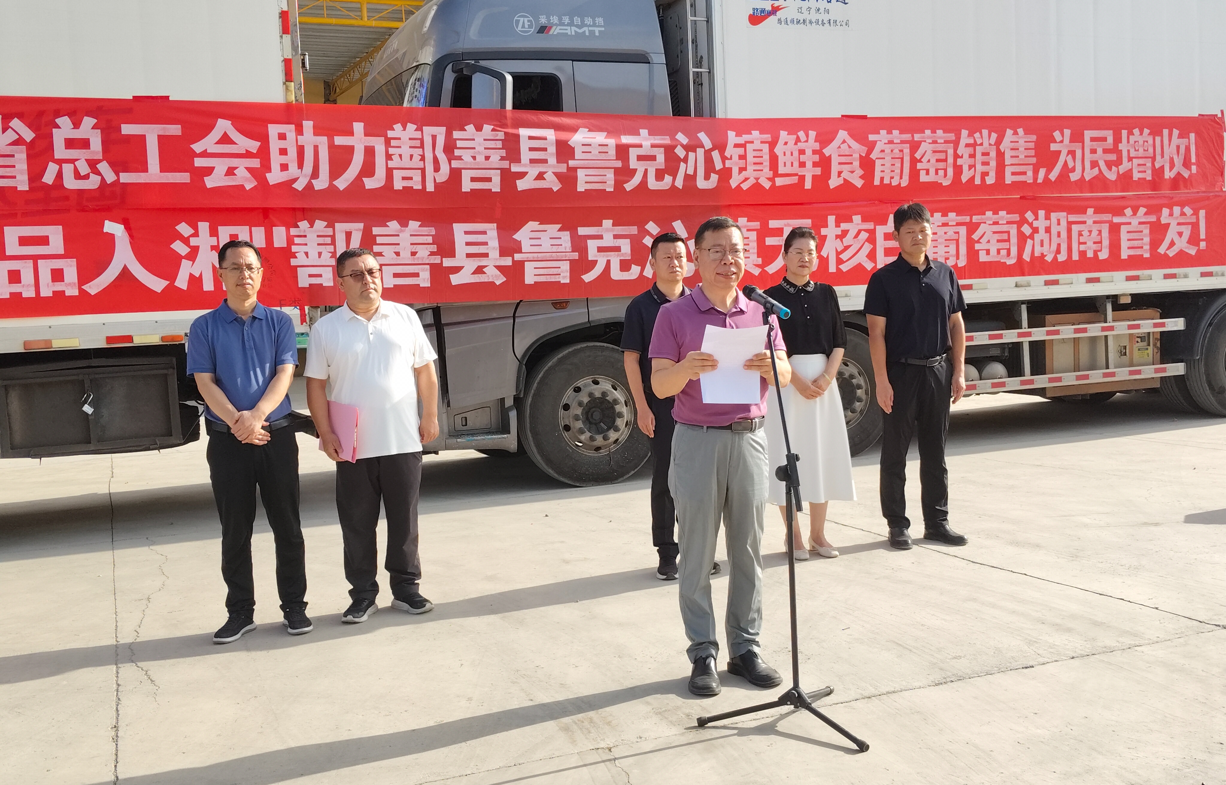 7月27日,鄯善縣舉行“甜蜜入湘”首批鮮食葡萄銷售發車儀式,滿載55噸優質鮮食葡萄的冷鏈貨車緩緩駛出,奔赴湖南消費市場。