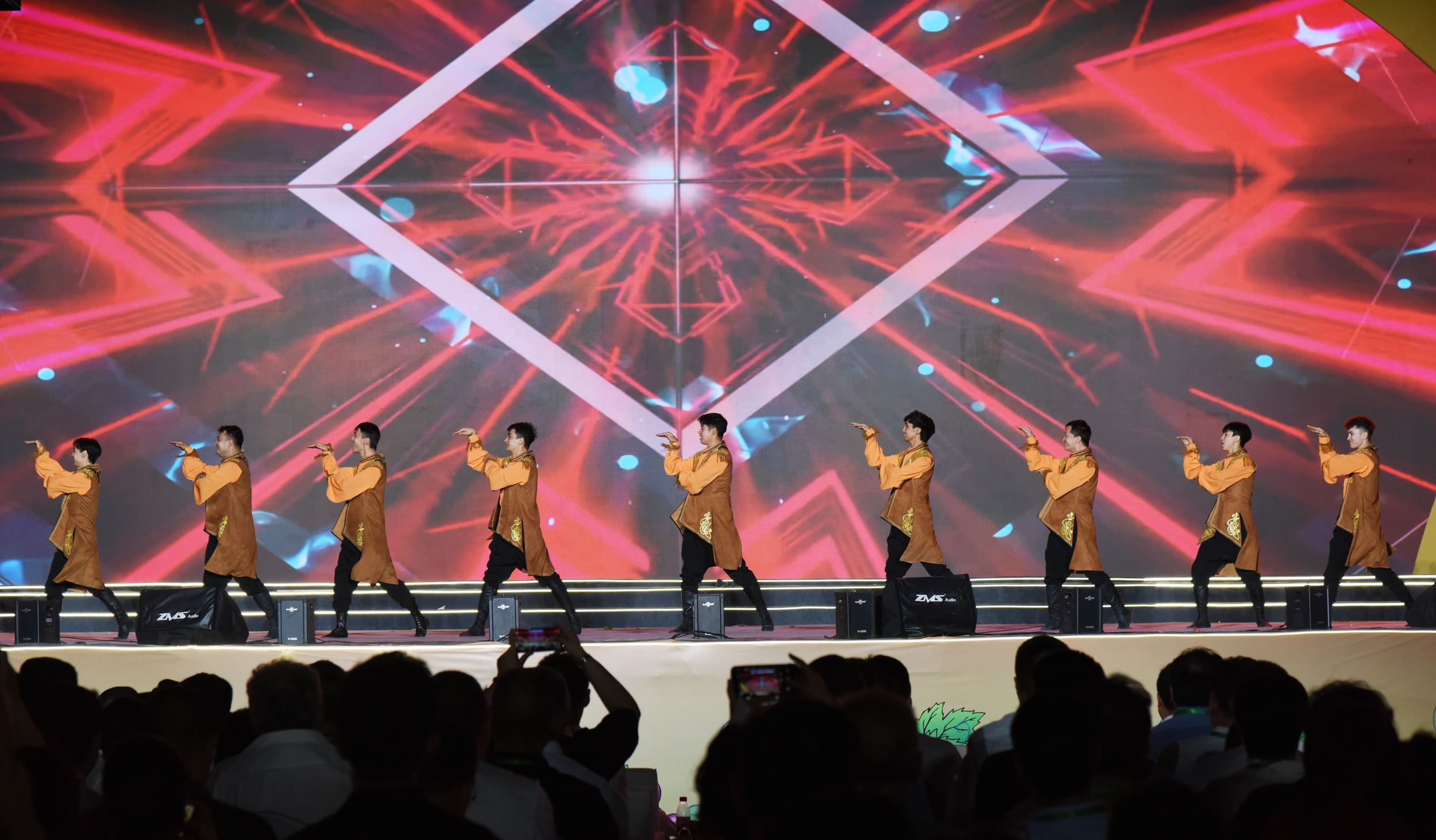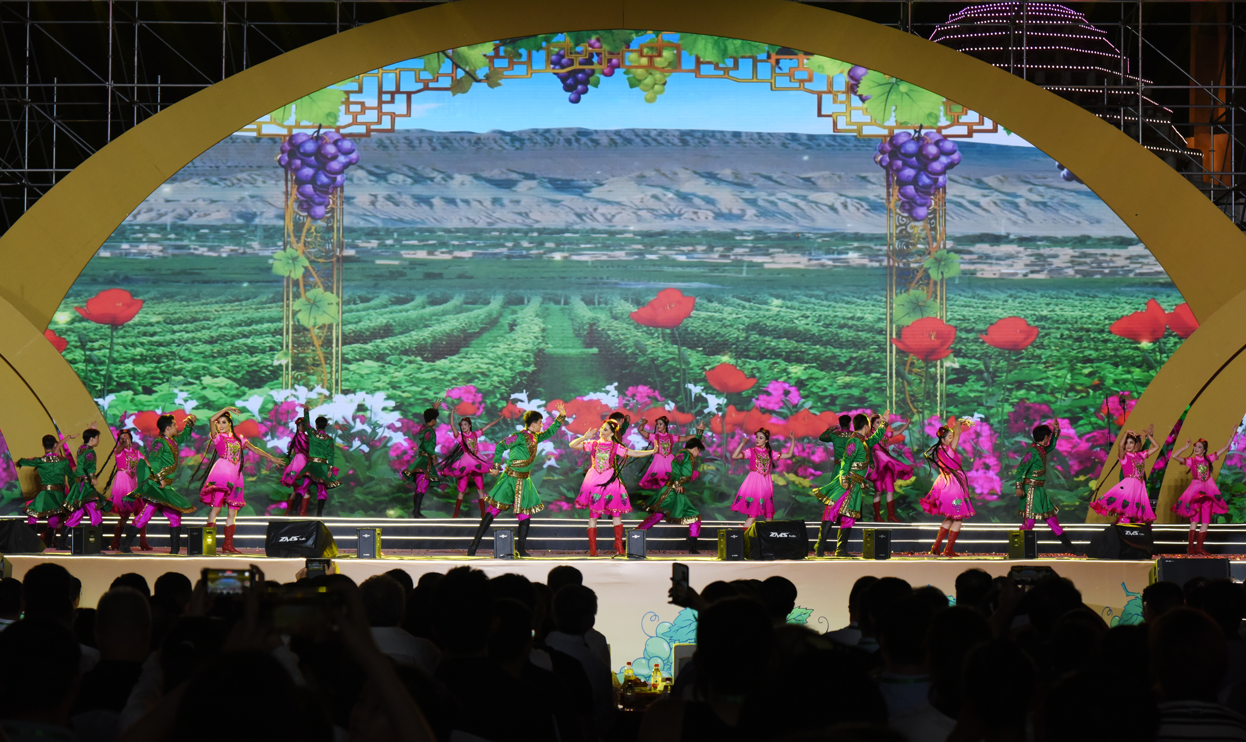 8月8日晚,第三十一屆絲綢之路吐魯番葡萄節開幕。圖為開場器樂演奏《火洲鼓韻》。 吐魯番市融媒體中心記者 劉健 攝