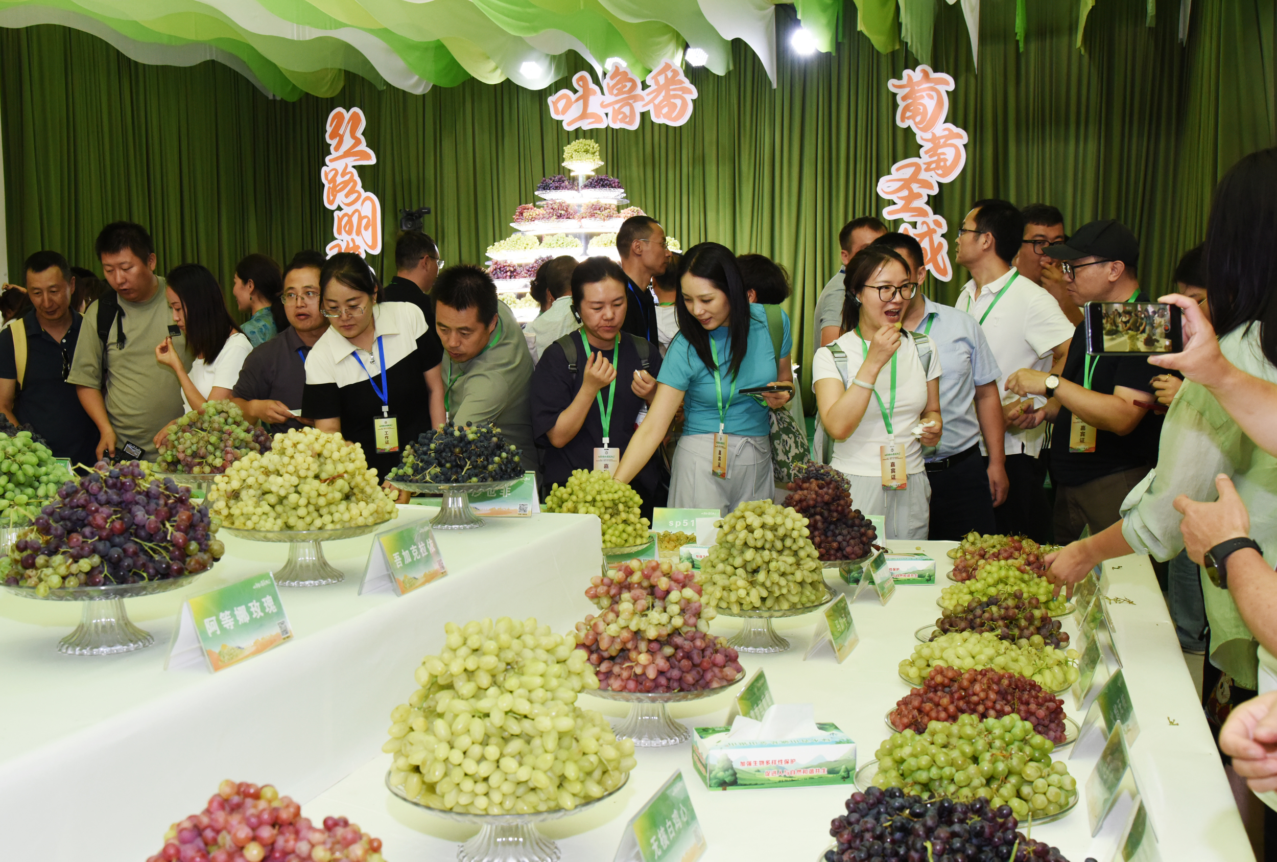 游客在葡萄主題集市參觀,品嘗葡萄。 吐魯番市融媒體中心記者 劉健 攝