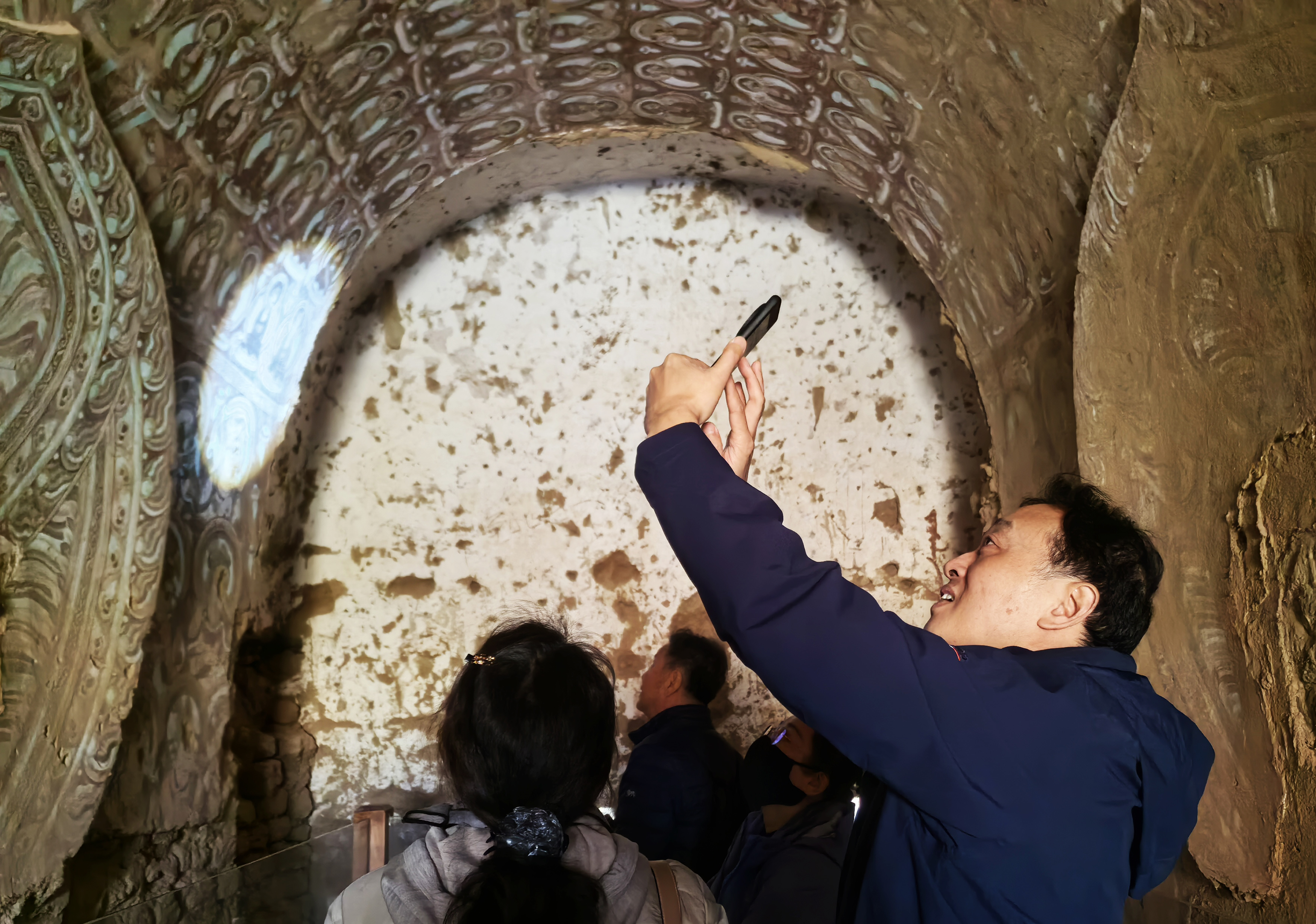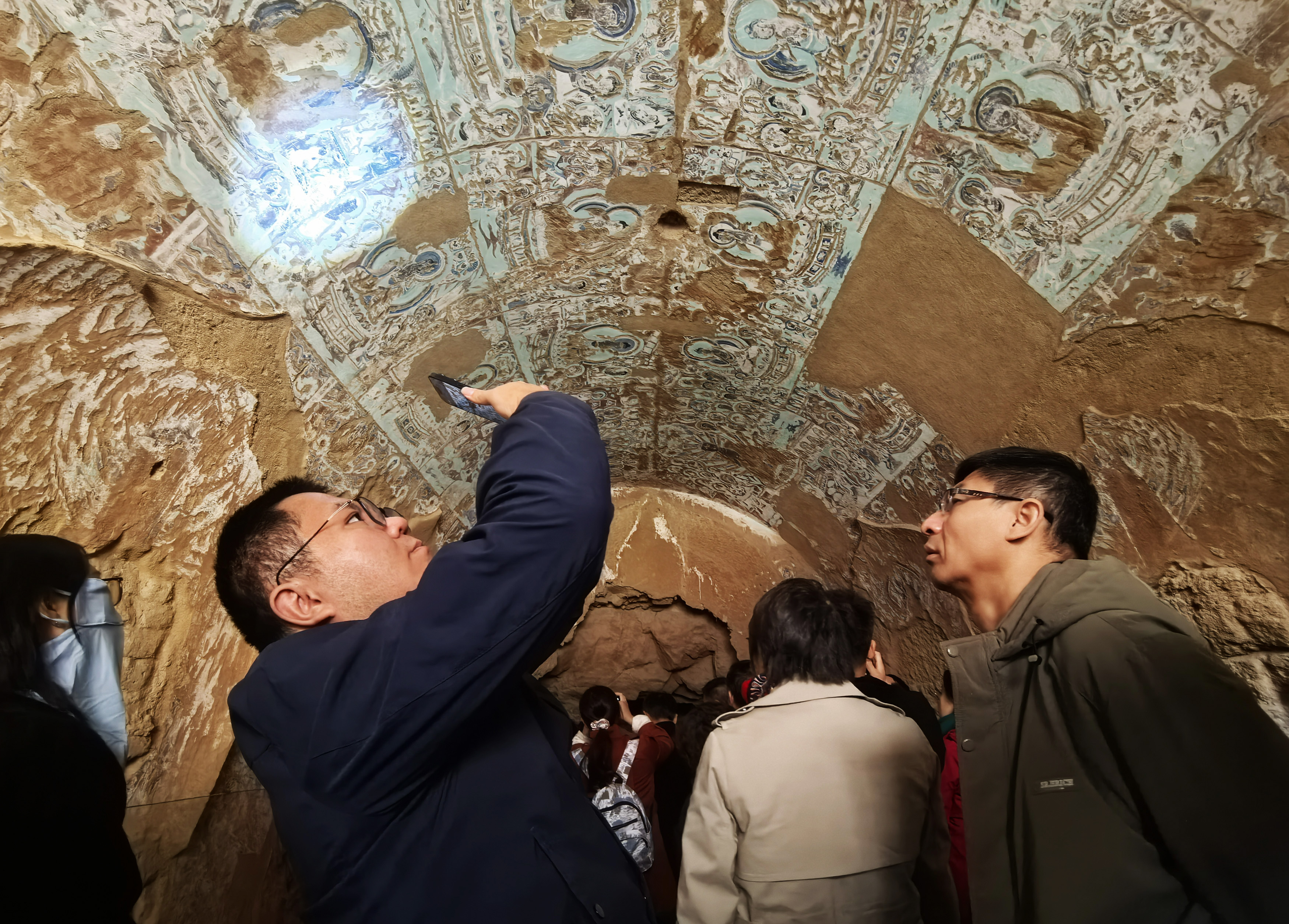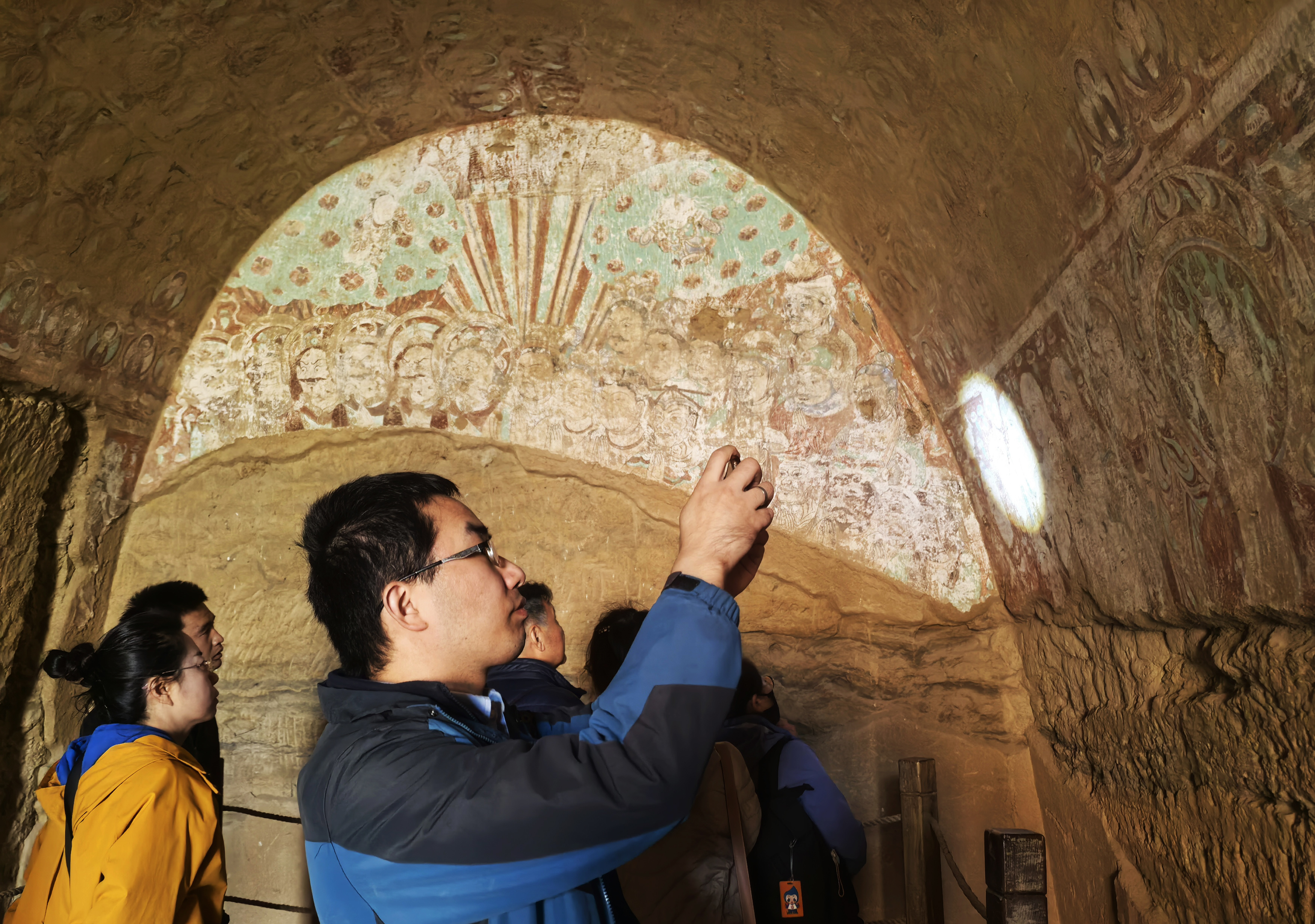 專家學者在柏孜克里克千佛洞考察。 吐魯番市融媒體中心記者 劉健 攝