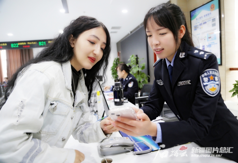 2023年4月6日,博湖縣行政服務大廳公安窗口民警指導群眾網上辦理戶籍業務。劉伸攝