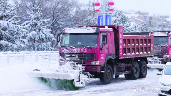 2月16日,清雪車在城市道路上清雪。2月15日,阿勒泰市迎來降雪天氣,環(huán)衛(wèi)部門實行24小時不間斷清雪作業(yè),全力保障道路暢通和群眾出行安全。 阿爾達克·拜斯汗攝