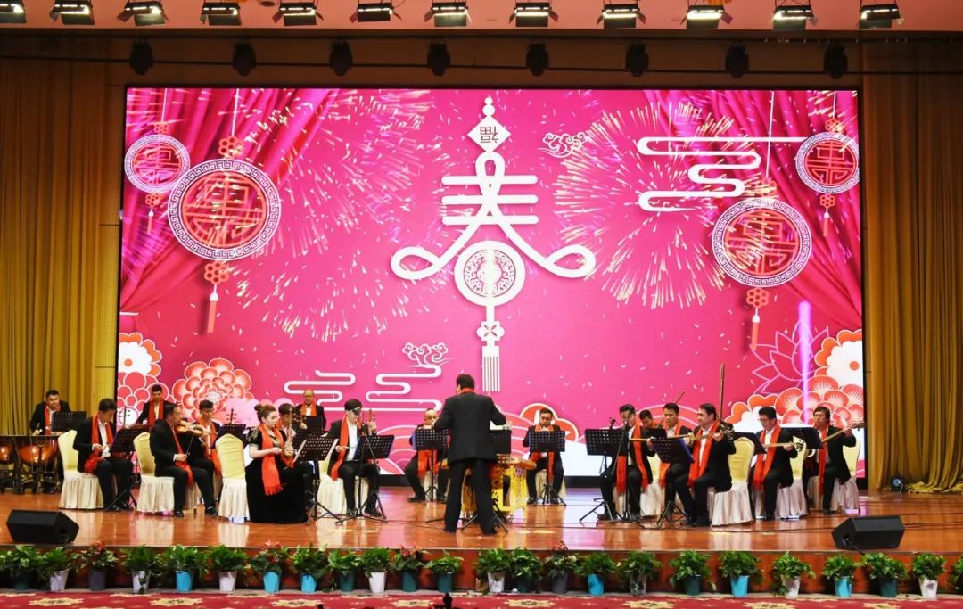 2月8日,在2024年春節(jié)團(tuán)拜會上,器樂合奏《春節(jié)奏曲》。吐魯番市融媒體中心記者 劉健 攝