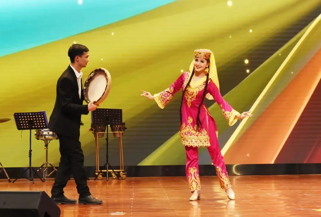 2月8日,在2024年春節(jié)團(tuán)拜會上,集體舞《歡樂納孜庫姆》。吐魯番市融媒體中心記者 劉健 攝