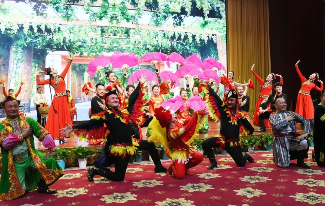 2月8日,在2024年春節(jié)團(tuán)拜會上,集體舞《赤亭古韻》。吐魯番市融媒體中心記者 劉健 攝