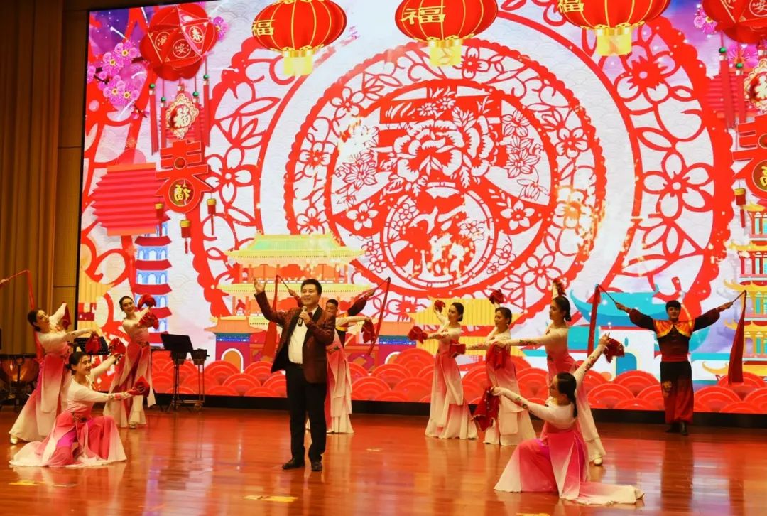 2月8日,在2024年春節(jié)團(tuán)拜會上,獨唱《我愛你中國》。吐魯番市融媒體中心記者 劉健 攝