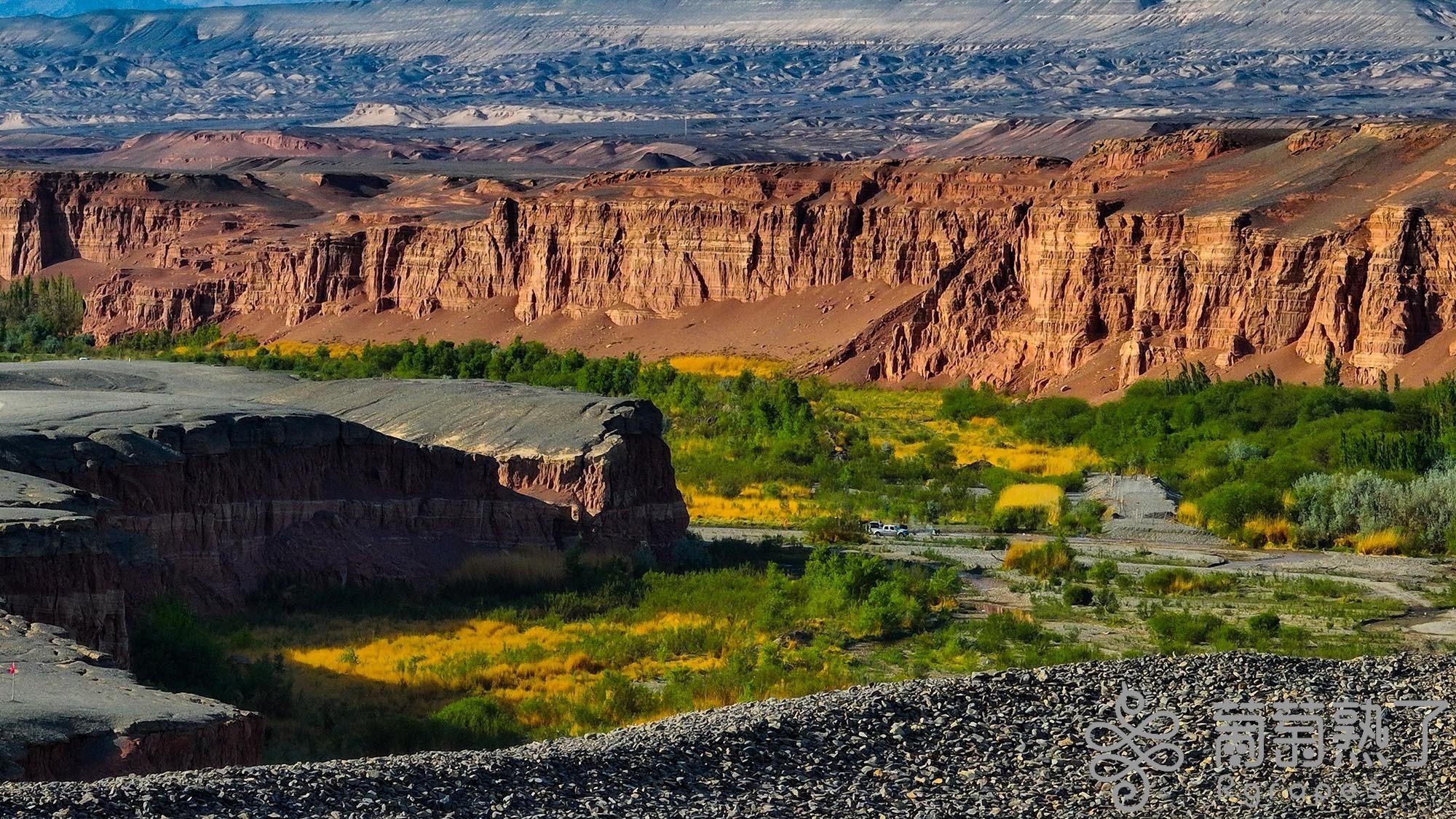 河水將泥巖“切割”形成峽谷后壁陡如削。