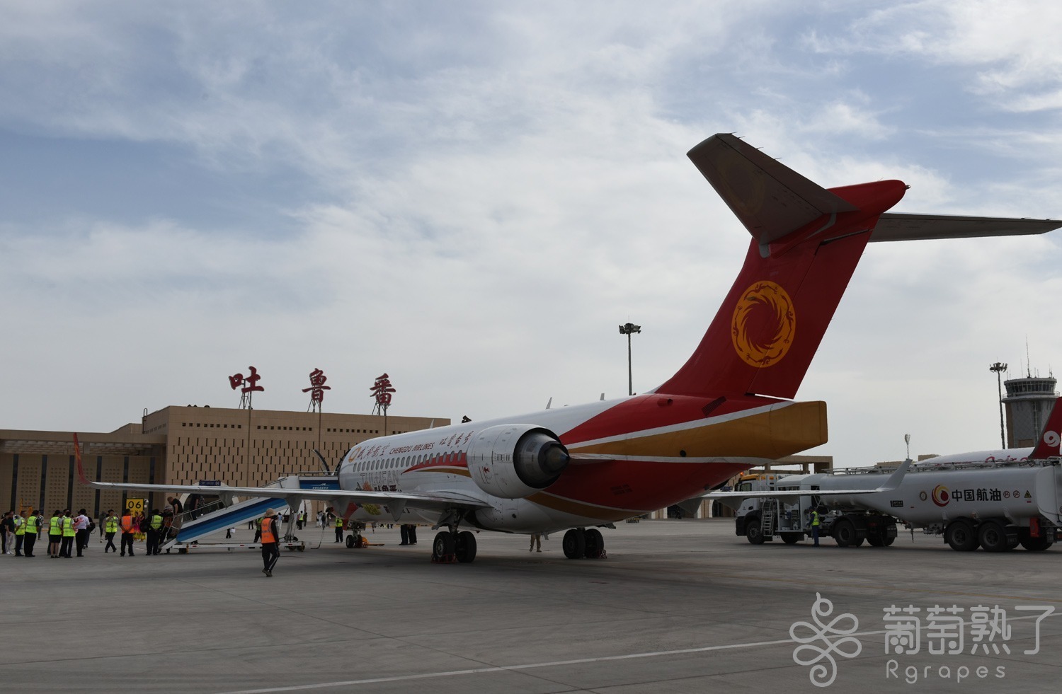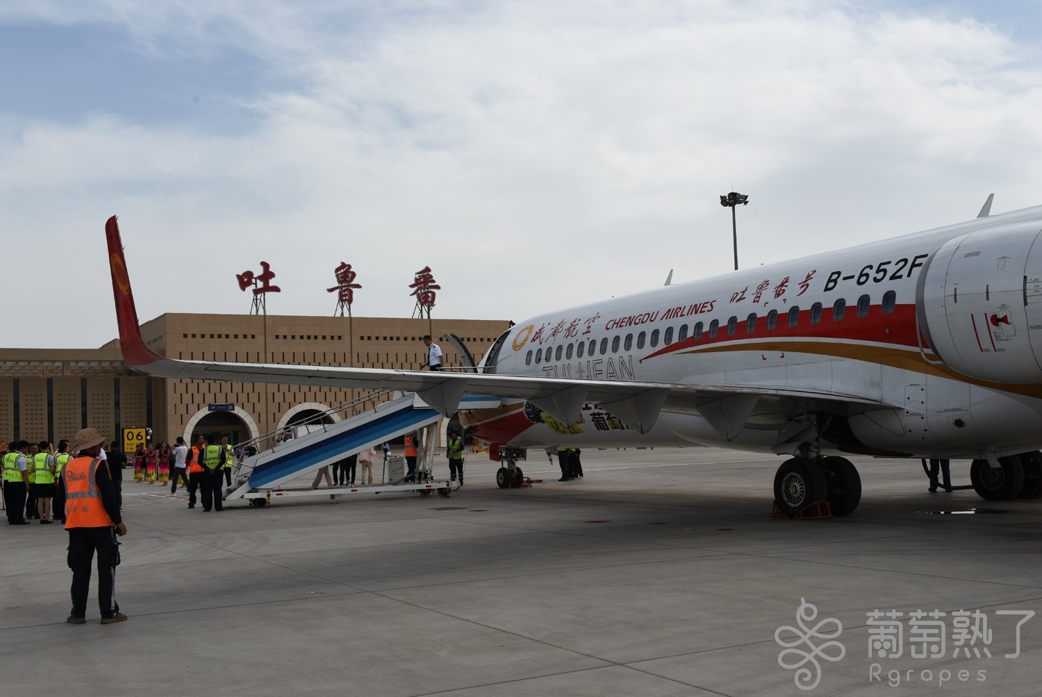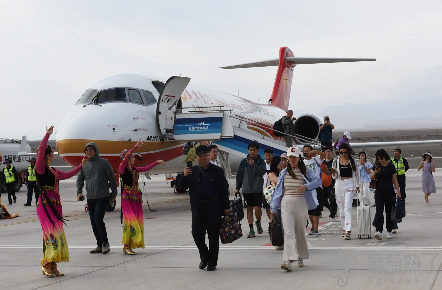 “吐魯番號”旅游包機首航成功。葡萄熟了/吐魯番市融媒體中心記者 劉健 攝