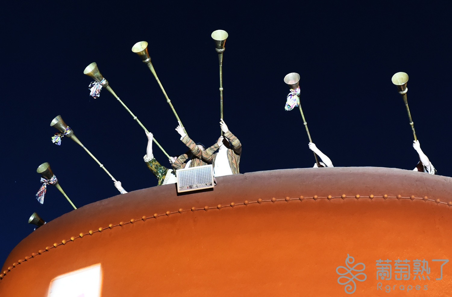 大嗩吶在夜空中吹響。5月28日晚,高昌區麥西來甫風情莊園沉浸式演藝精彩上演,吸引了眾多游客和市民駐足觀看。該演出充分展示了吐魯番打擊樂《高昌古韻》和民族特色歌舞《阿拉木汗》《吐魯番的葡萄會唱歌》等節目,向觀眾展示吐魯番獨特的文化藝術魅力。葡萄熟了/吐魯番市融媒體中心記者 劉健 攝