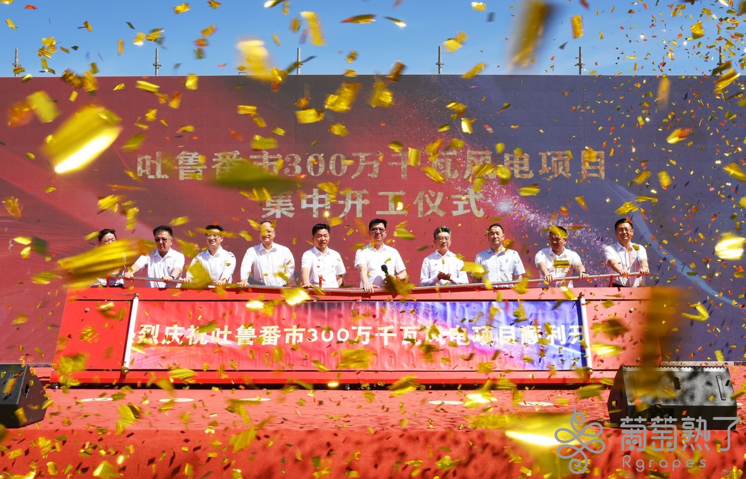 葡萄熟了/吐魯番市融媒體中心訊 6月20日,吐魯番市300萬(wàn)千瓦風(fēng)電項(xiàng)目集中開(kāi)工儀式在托克遜縣小草湖南風(fēng)區(qū)·廣東能源托克遜風(fēng)電場(chǎng)舉行。該項(xiàng)目總投資近126億元,總裝機(jī)容量300萬(wàn)千瓦,年設(shè)計(jì)發(fā)電量約70億千瓦時(shí),分別由中電建新能源集團(tuán)股份有限公司、廣東省能源集團(tuán)新疆有限公司、華能新疆能源開(kāi)發(fā)有限公司負(fù)責(zé)投資建設(shè)。該項(xiàng)目的落地,標(biāo)志著吐魯番市在打造千萬(wàn)千瓦級(jí)大型清潔能源基地的步伐上邁出了跨越式的一步,有力推動(dòng)吐魯番綠色新能源產(chǎn)業(yè)進(jìn)入發(fā)展新時(shí)期,為全疆經(jīng)濟(jì)高質(zhì)量發(fā)展示范區(qū)建設(shè)提供強(qiáng)有力的支撐。