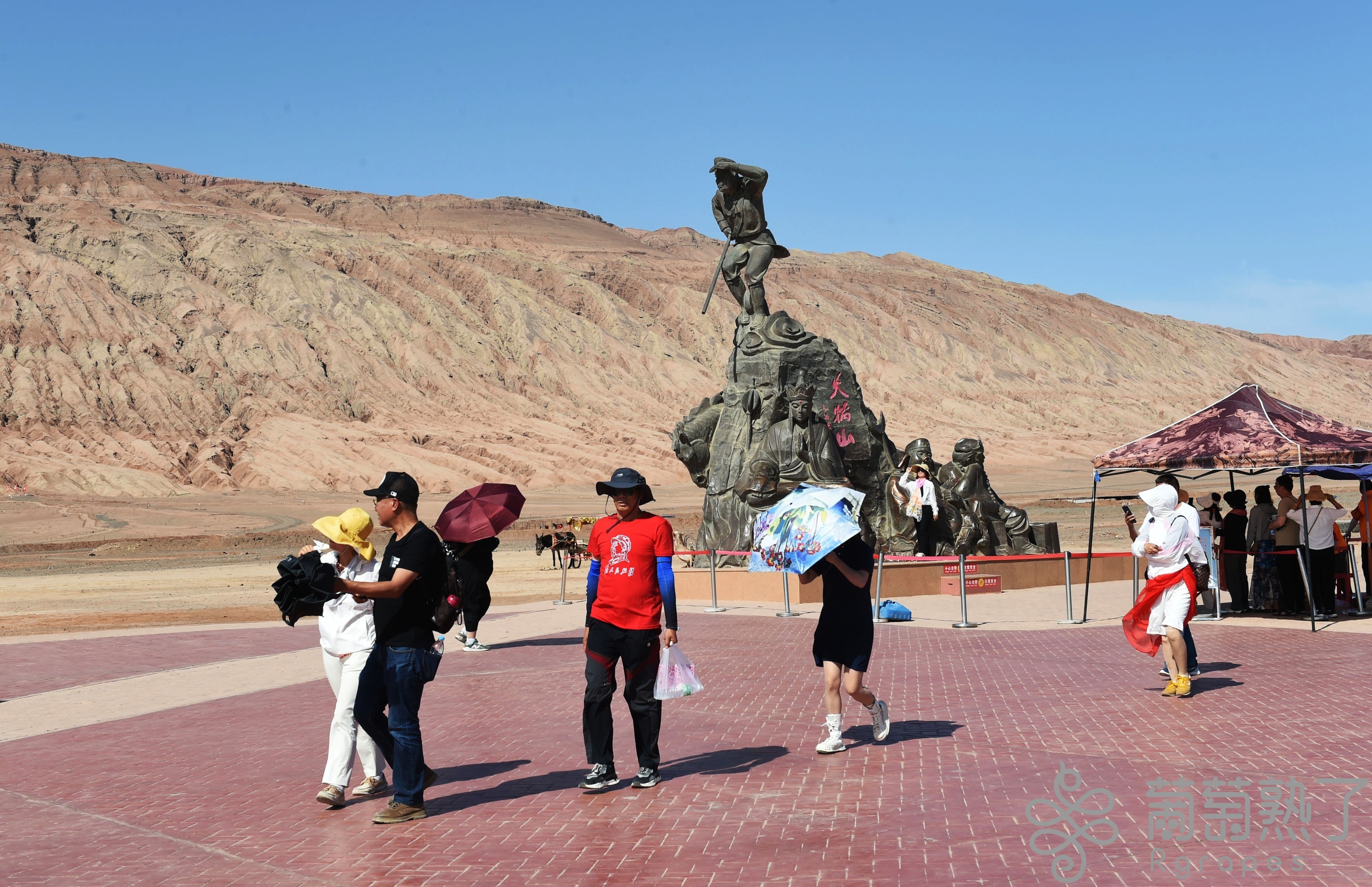 6月24日,火焰山景區金箍棒造型溫度計顯示地表溫度為80攝氏度,如此高溫天氣卻難以阻擋游客感受火焰山的熱度。6月23日17時23分,吐魯番市氣象臺發布今年首個高溫紅色預警。預計24日至26日,高昌區、托克遜縣及鄯善縣部分鄉鎮將出現45℃以上高溫天氣,請大家加強防范,外出時做好防暑防曬措施。葡萄熟了/吐魯番市融媒體中心記者 劉健 攝