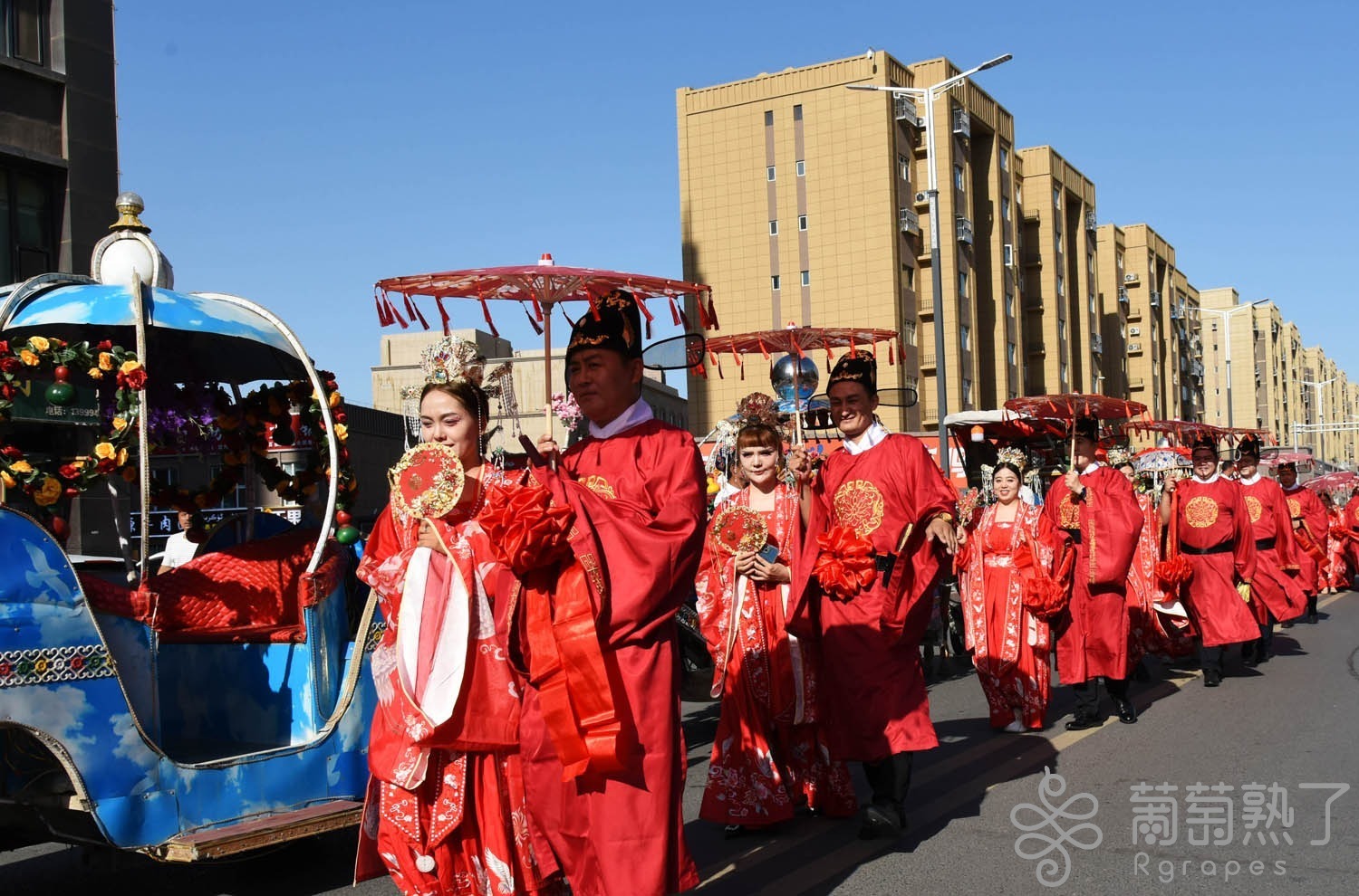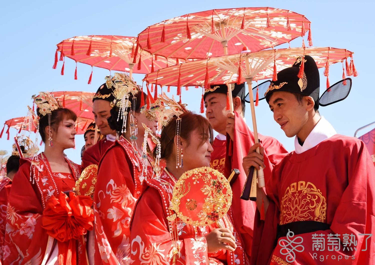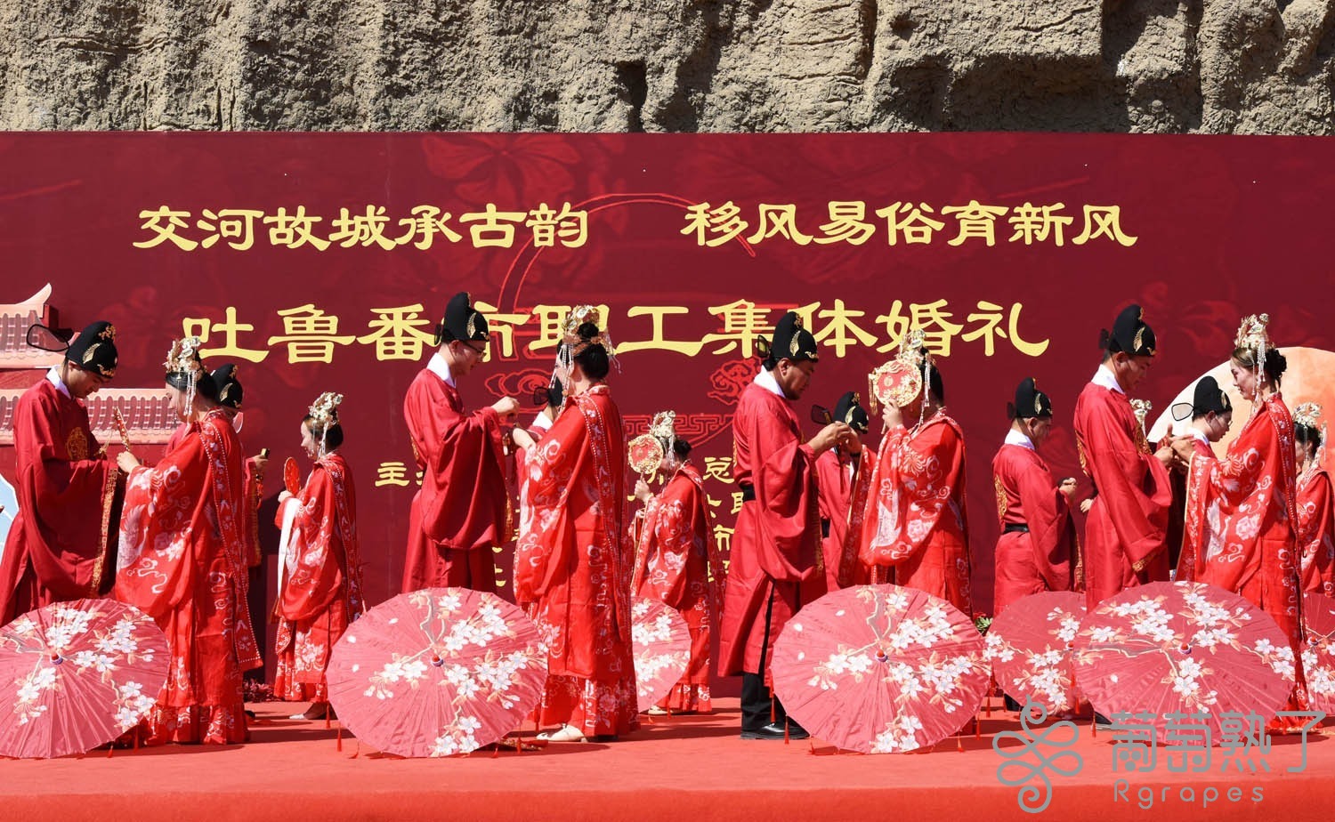 8月10日,隆重而浪?漫的集體婚禮在交河故城景區舉行。葡萄熟了/吐魯番市融媒體中心記者 劉健 攝