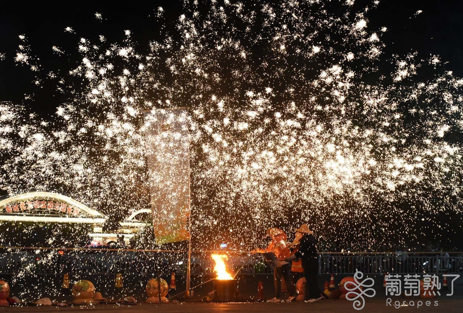 【圖說吐魯番】非遺“打鐵花”亮相火洲 火樹銀花添彩葡萄節