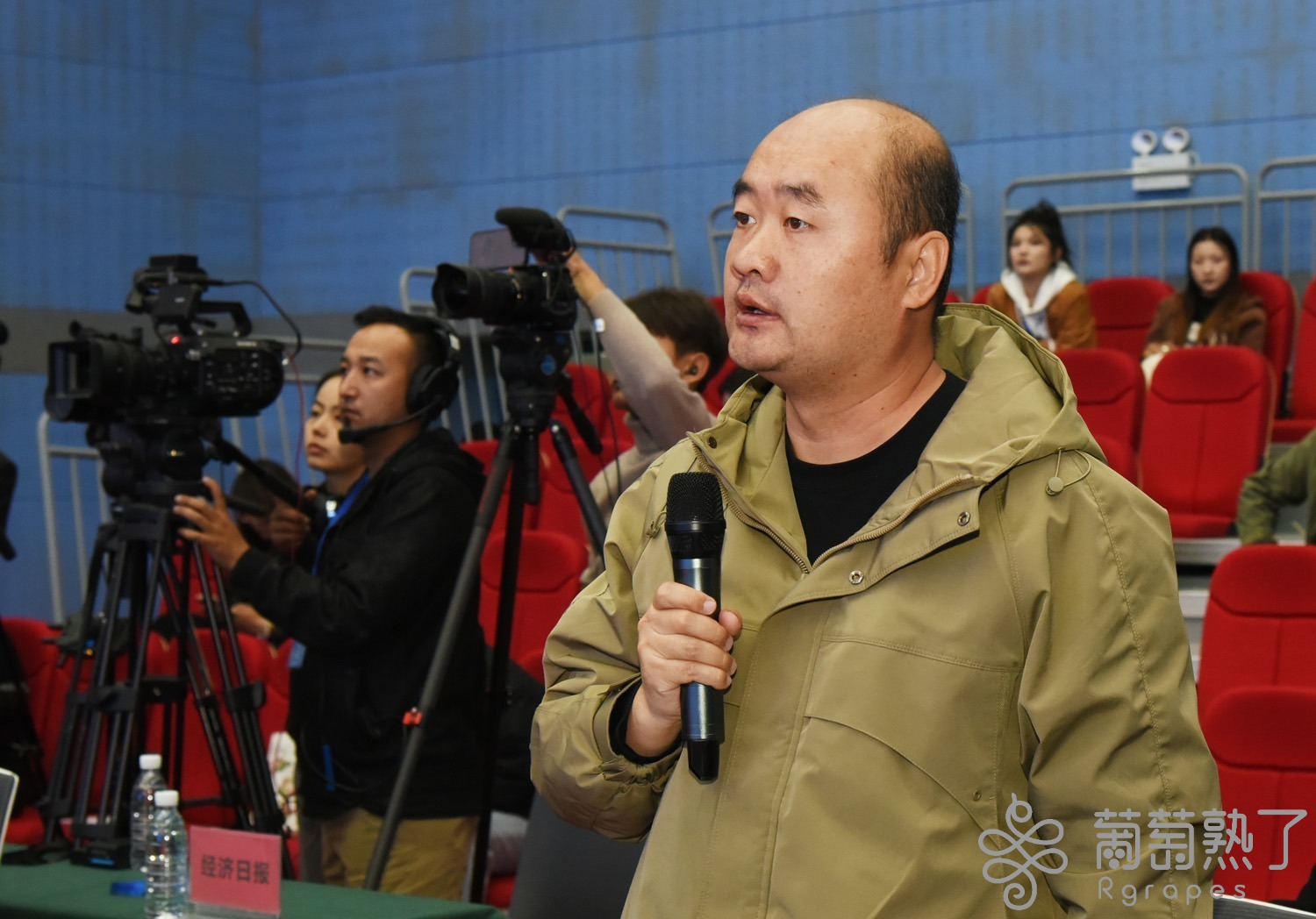 圖為媒體記者在吐魯番市冬季旅游新聞發布會現場提問。葡萄熟了/吐魯番市融媒體中心記者 劉健 攝