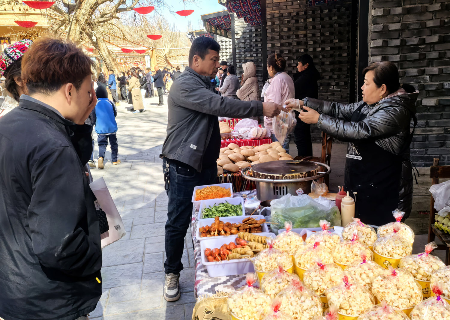 3月15日,游客在嘉年華現場品嘗購買小吃點。吐魯番市融媒體中心記者 劉健 攝