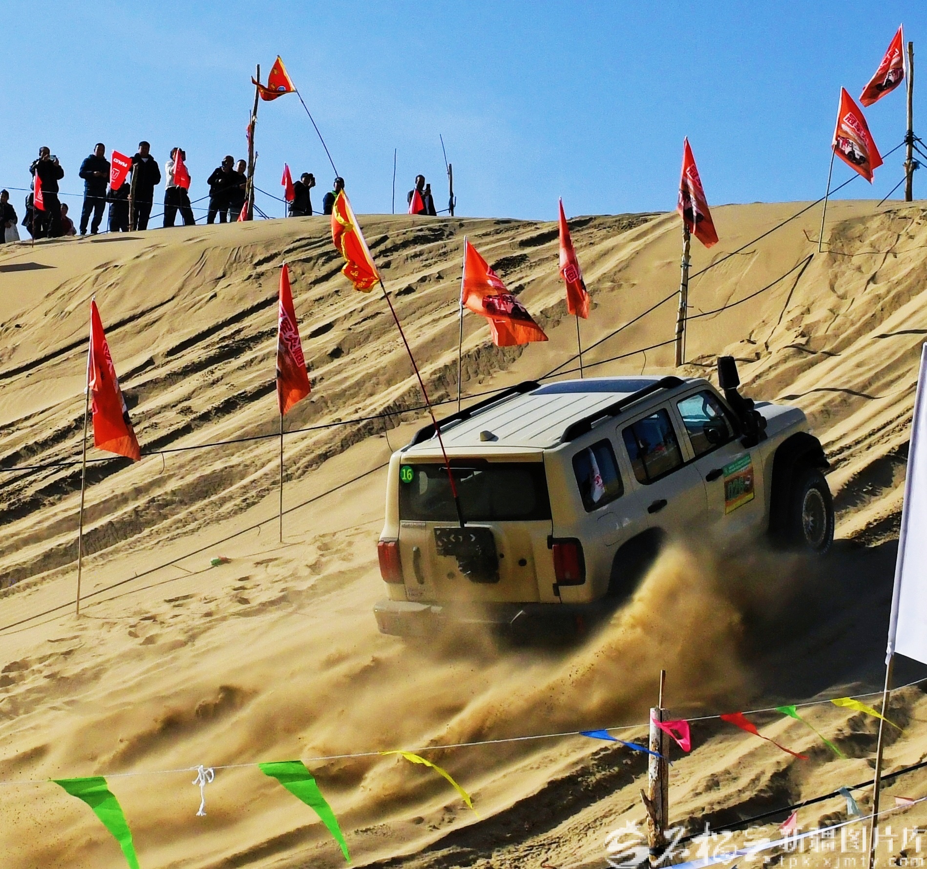 隨著發令旗揮下,國產量產組(含新能源)場地賽率先開賽,賽車如離弦之箭沖出起點,車輪卷起漫天黃沙,在蜿蜒賽道上演繹騰躍、漂移與爬坡的驚險瞬間,引得觀眾陣陣歡呼。