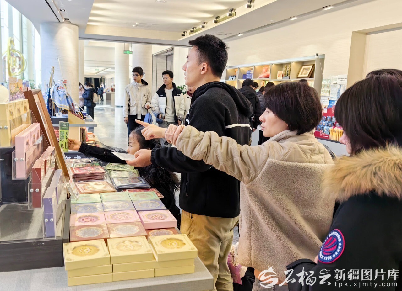 11月8日,在新疆博物館,游客在選購各種文創產品。